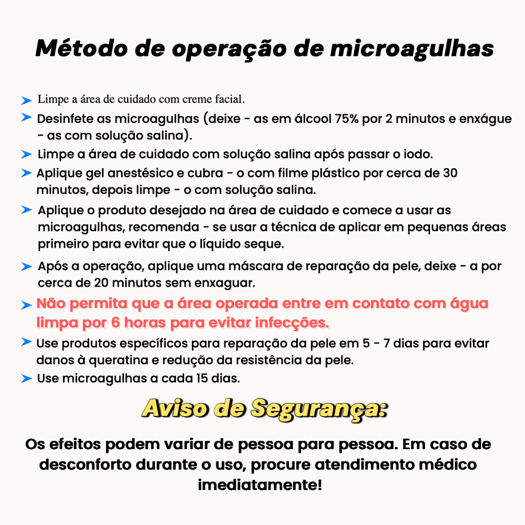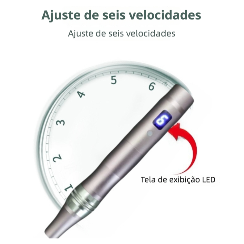 Caneta Derma Sem Fio Profissional, 3 Cartuchos de Agulha