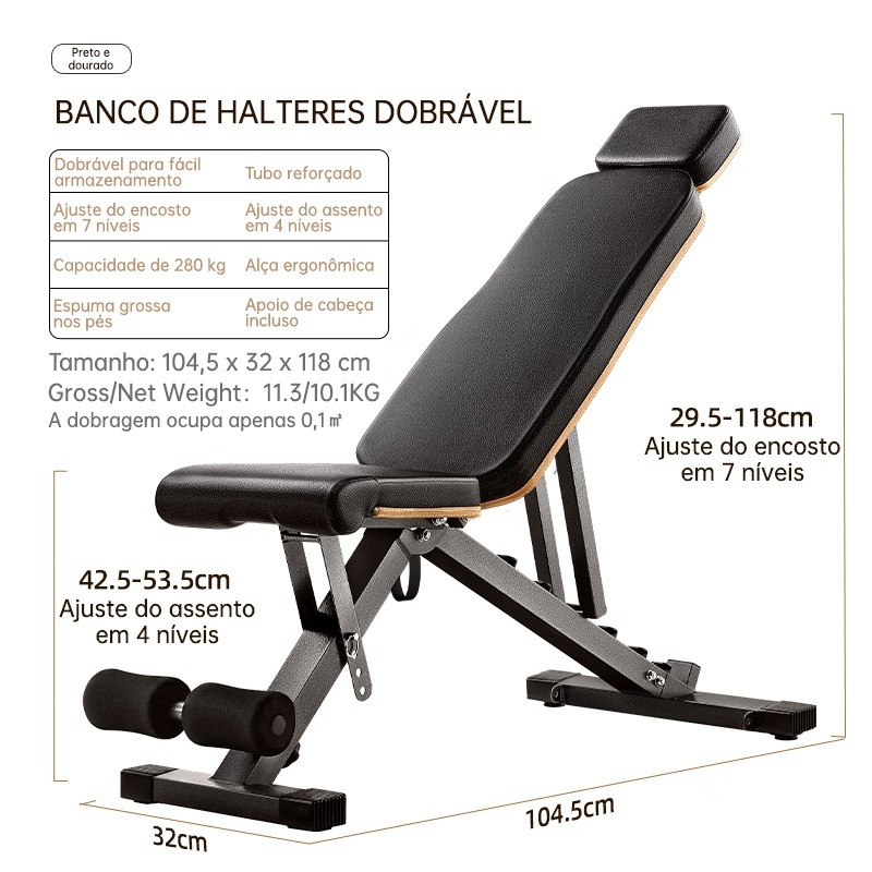 Banco De Peso Ajustável 6 Em 1 Com Capacidade De 450 Kg-Plano , Inclinado , Dezembro 7 ° Posições Para Exercícios De Gin