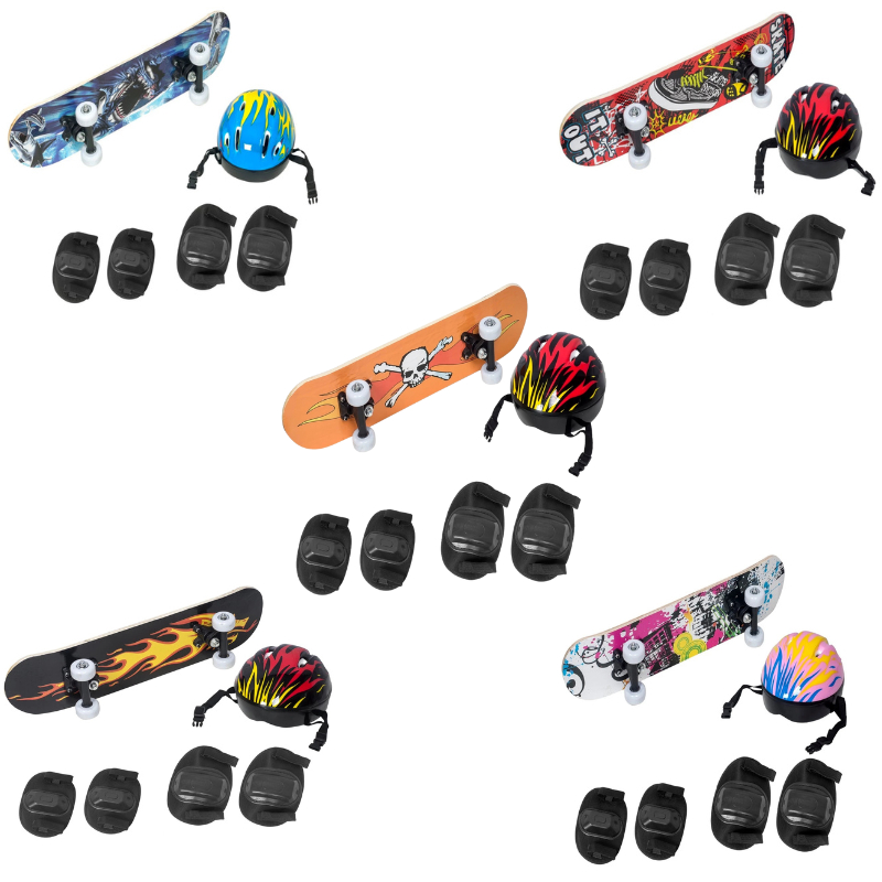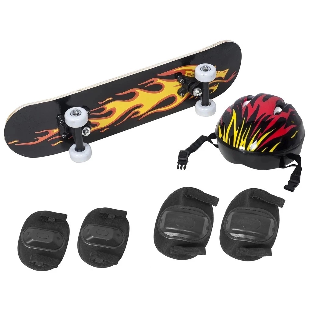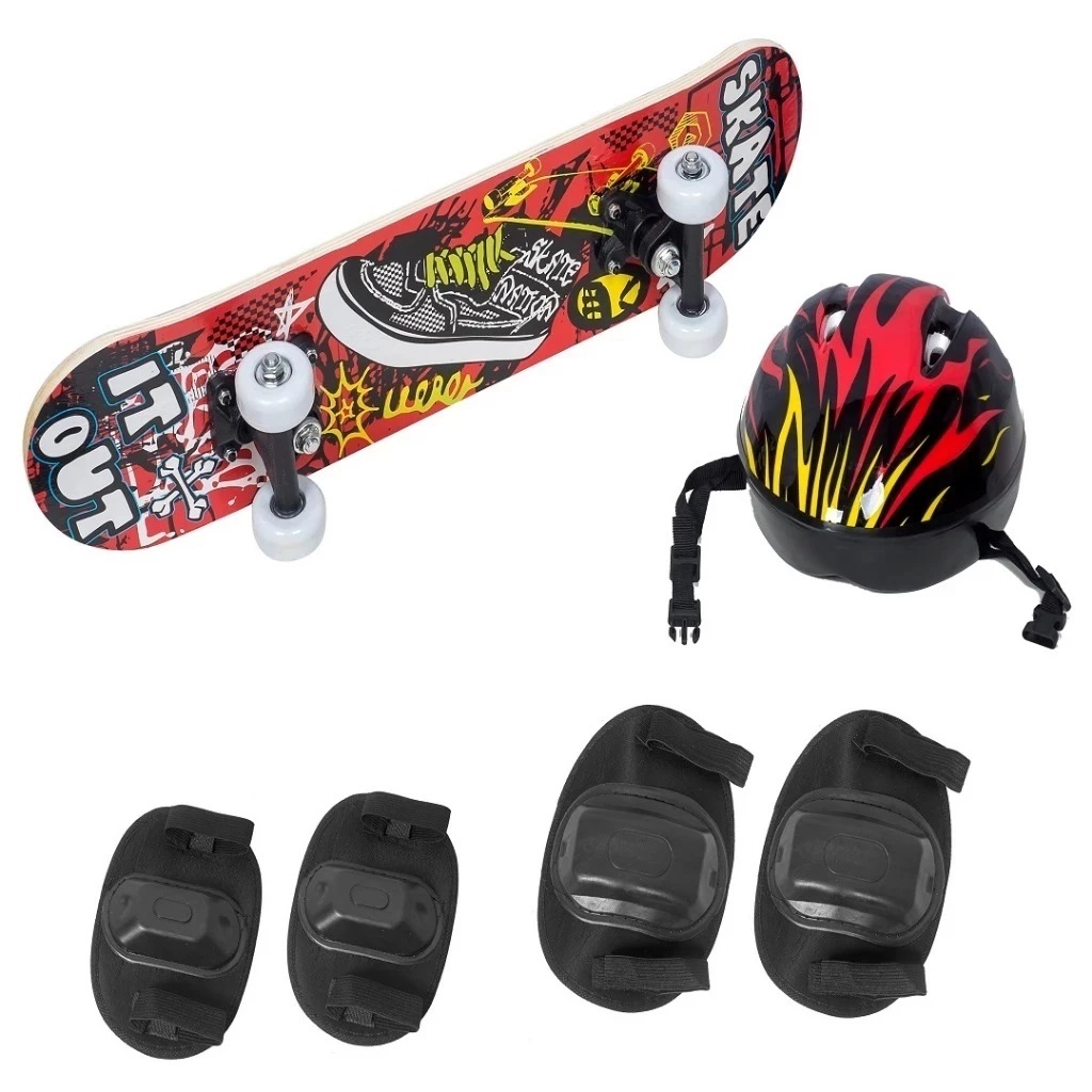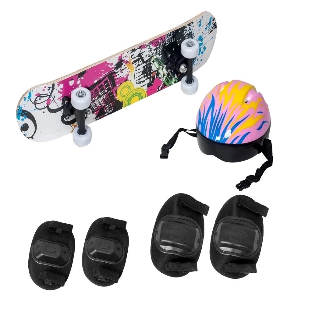 Skate Infantil Semi Profissional C/ Kit Proteção Shape Lixa Estampado Suporta até 50kg Menino/Menina