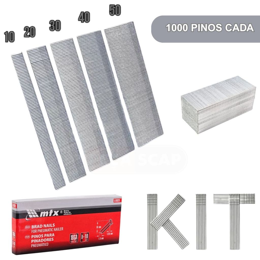 Kit 5000 Pinos 50, 40, 30, 20 e 10MM (1000uni. de cada) Para Pinadores Pneumático - MTX