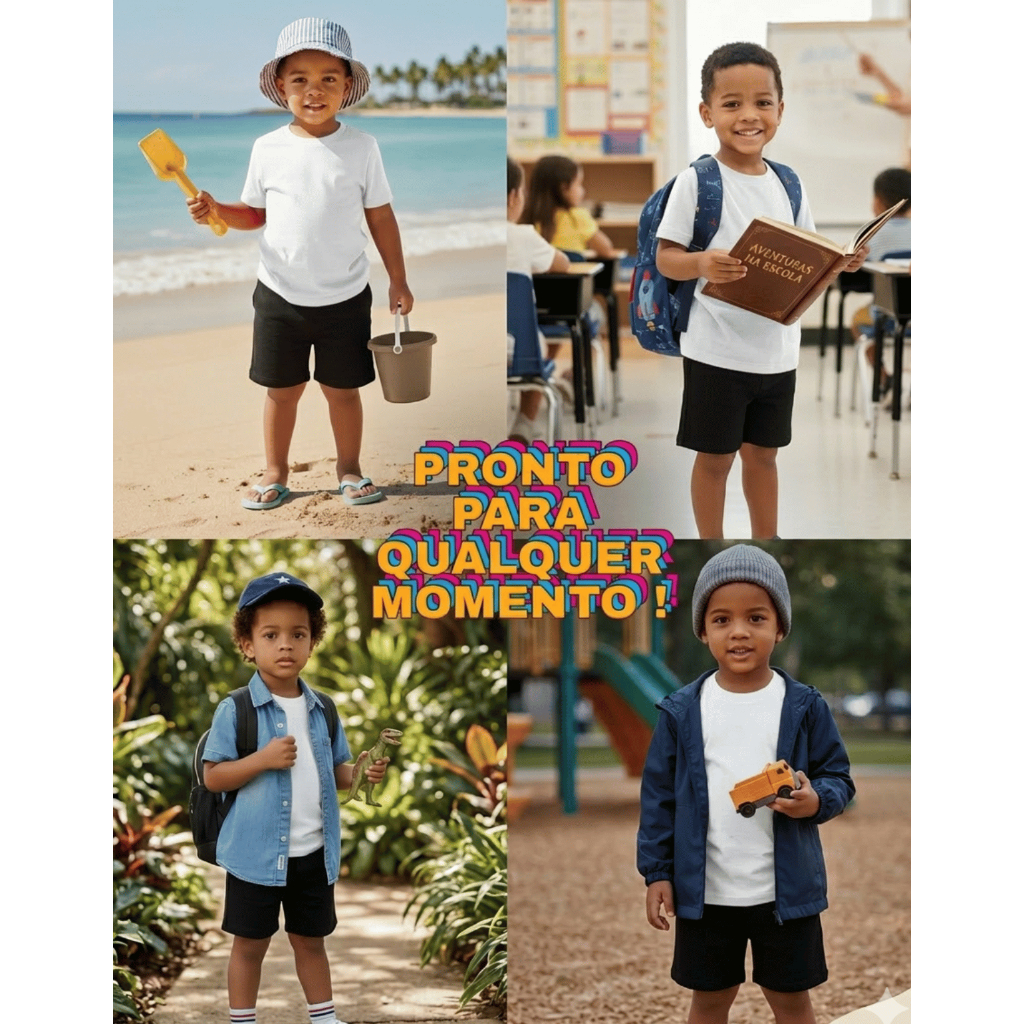 Camiseta Infantil Algodão 100% Básica Confortável Unissex