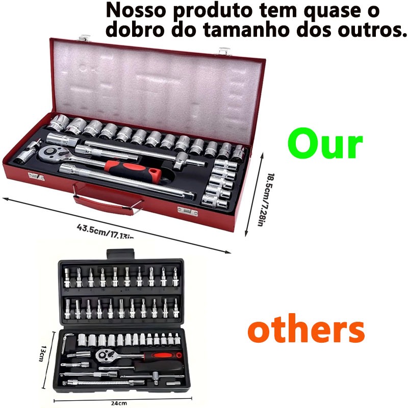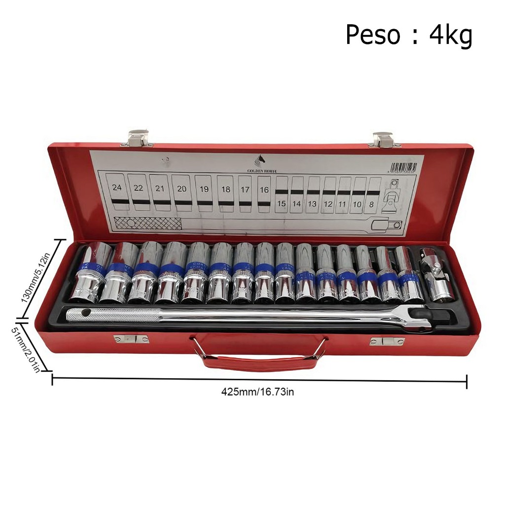 1/2“Jogo De Chave Catraca Caixa De Ferramentas Completa Aplicável a motocicletas, carros e caminhões