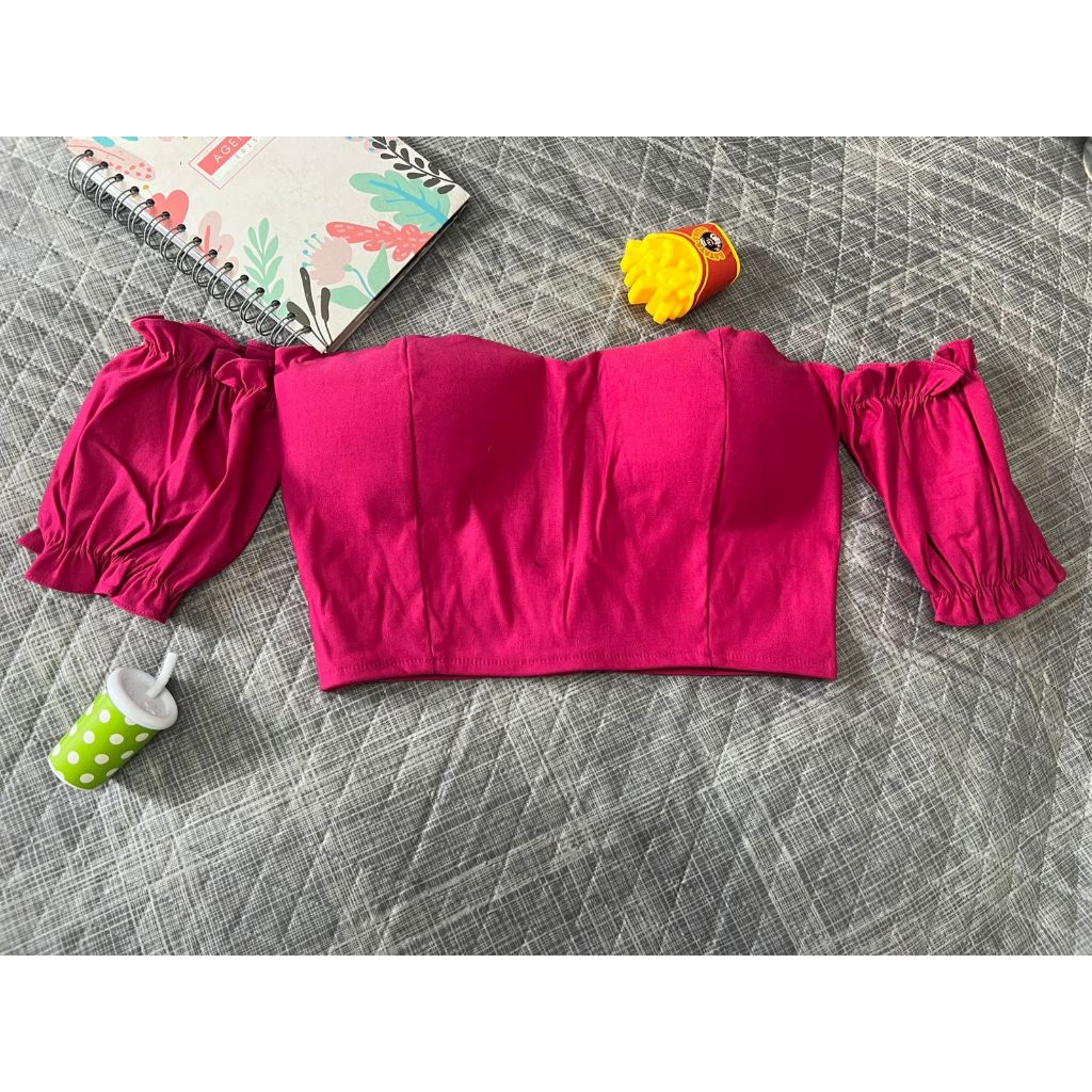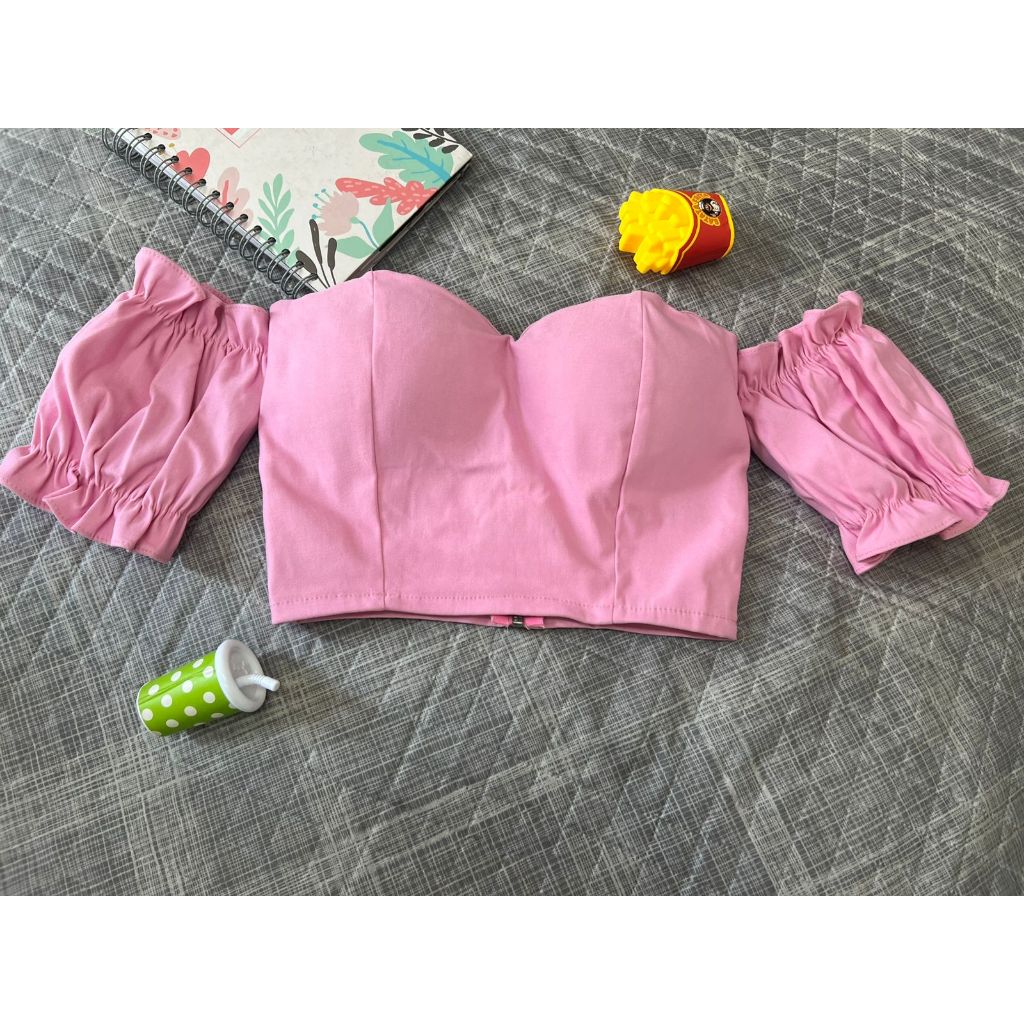 Cropped Manga Princesa Rosa Feminino Bengaline C/ Bojo, Blusa Bufante T. Único 36 ao 42, Social Elegante - COCO FEMME