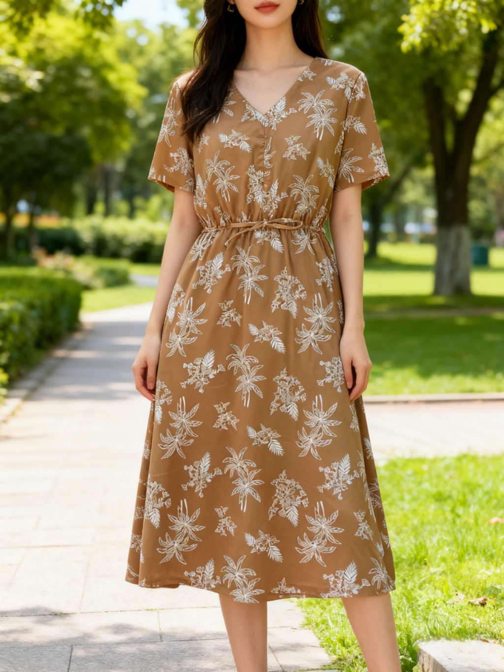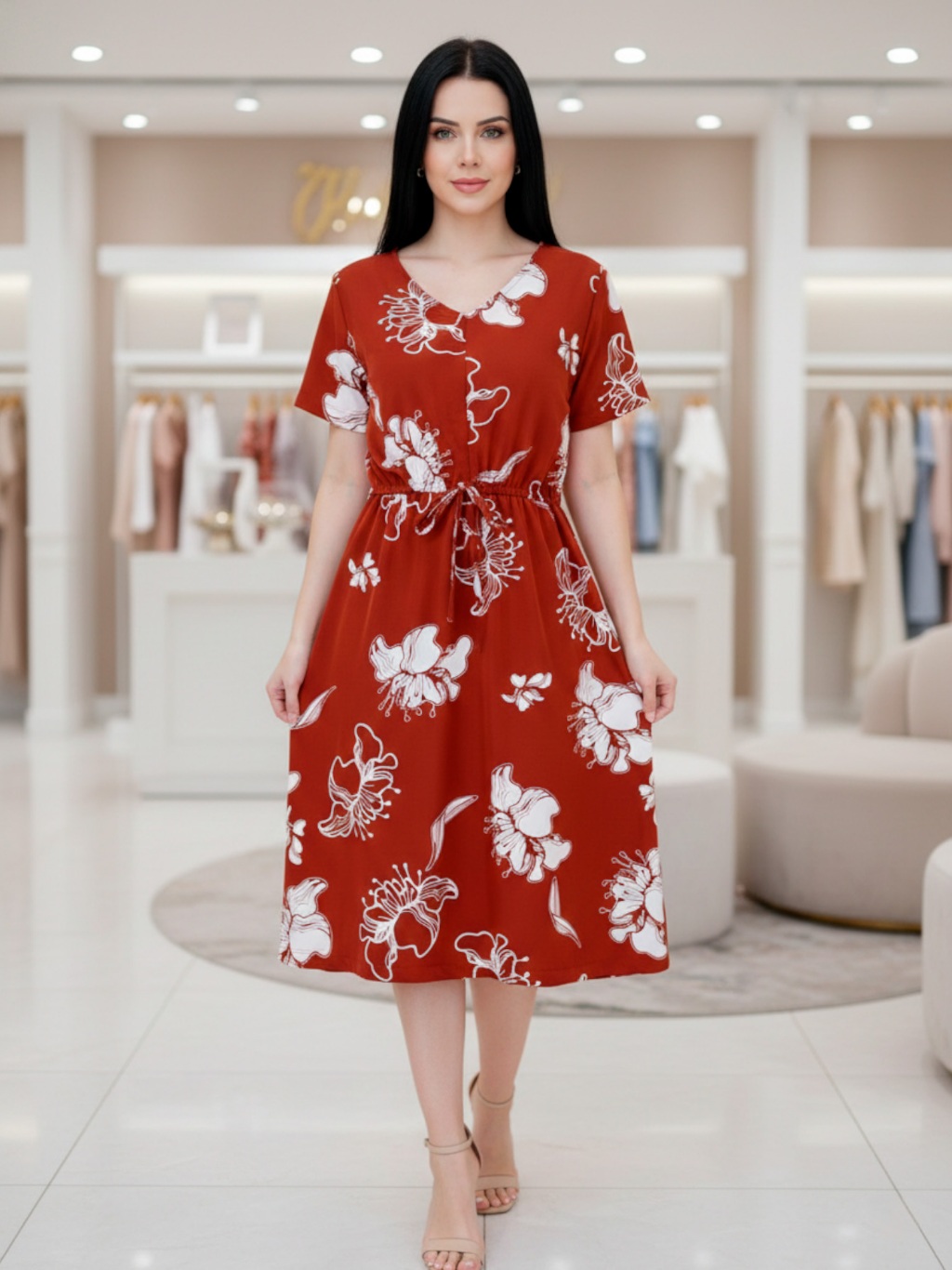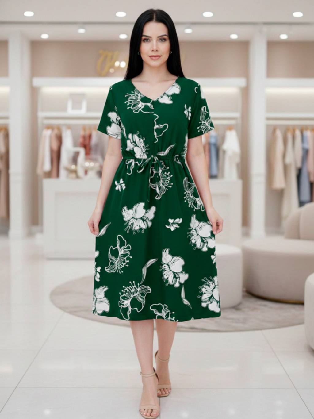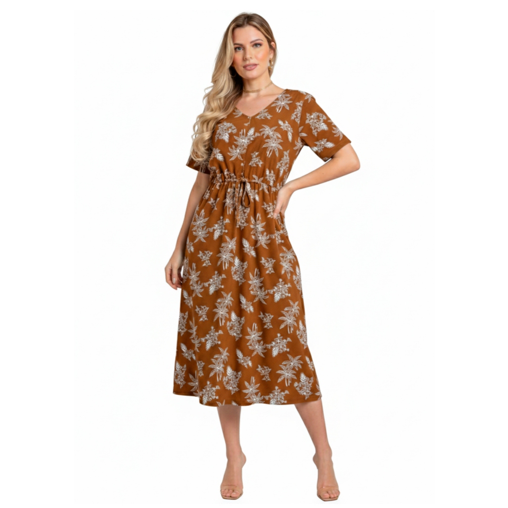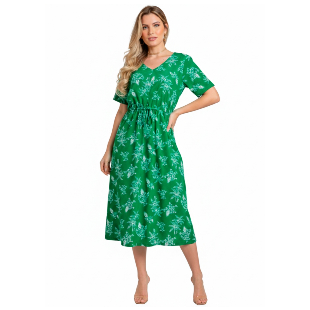 Vestido Midi Feminino Crepinho Estampado Floral Moda Evangélica Veste 40 ao 46