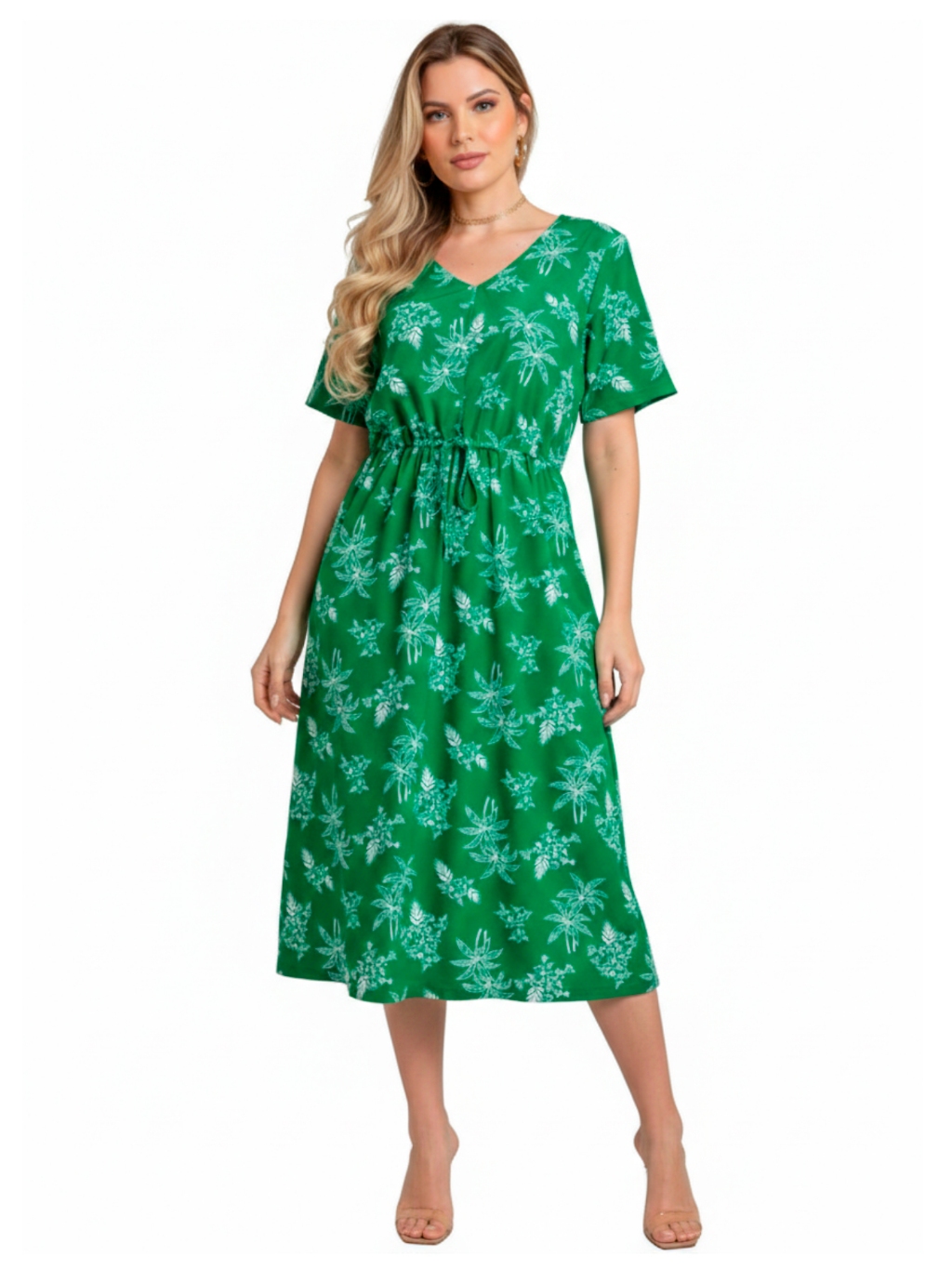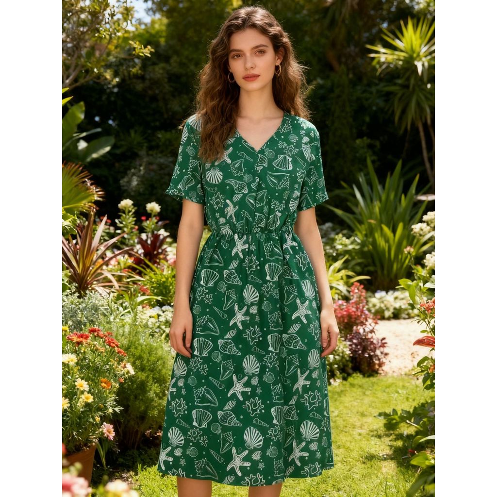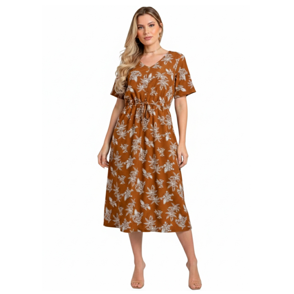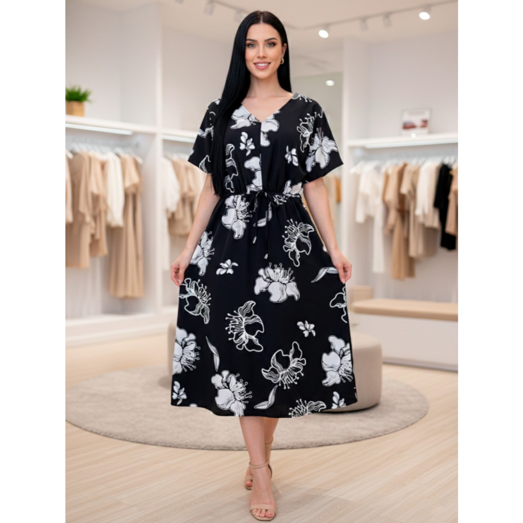 Vestido Midi Crepinho Estampado Amplo Moda Evangélica Veste 40 ao 46 Com Lastex que Ajusta