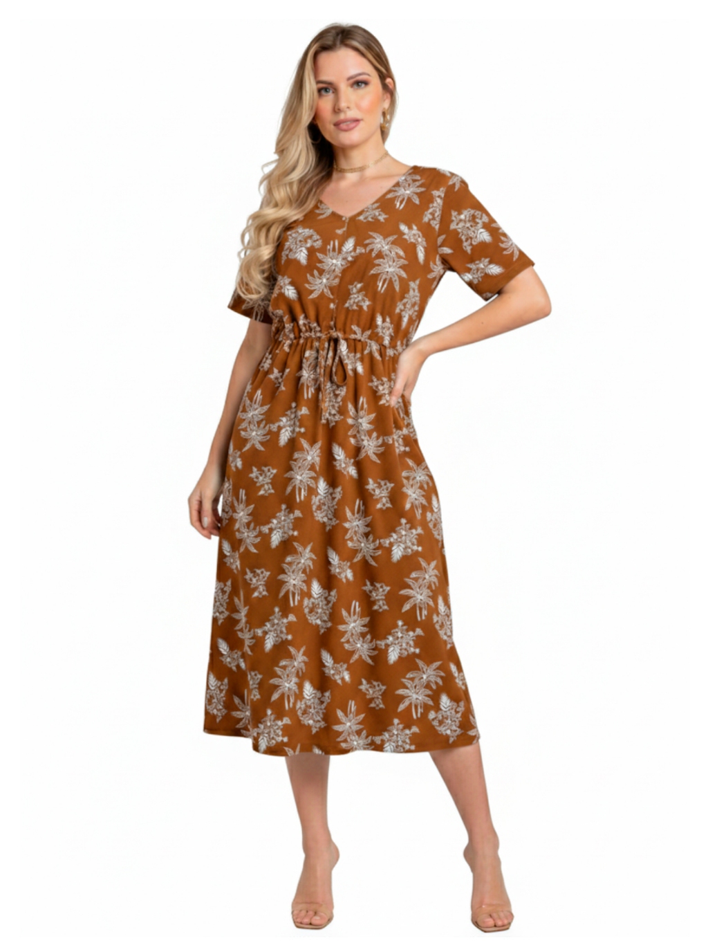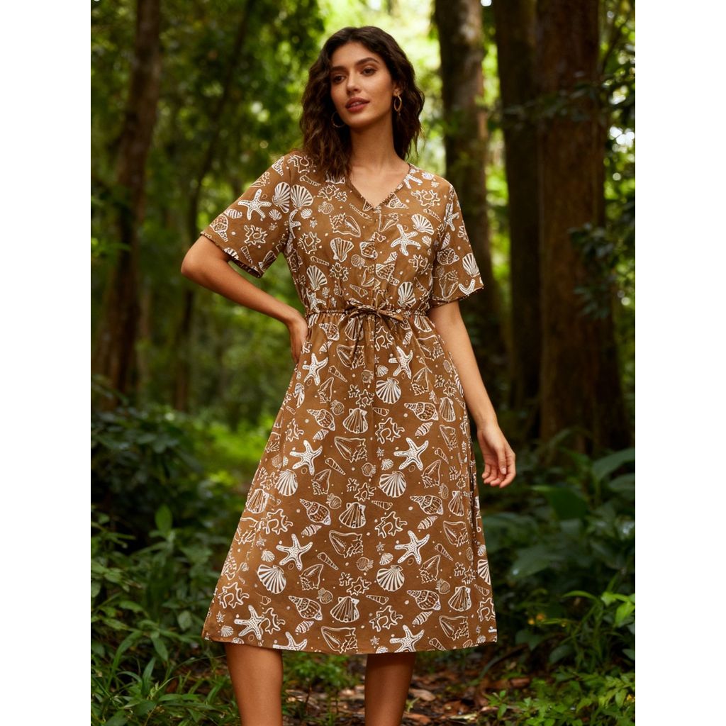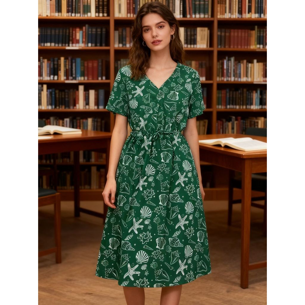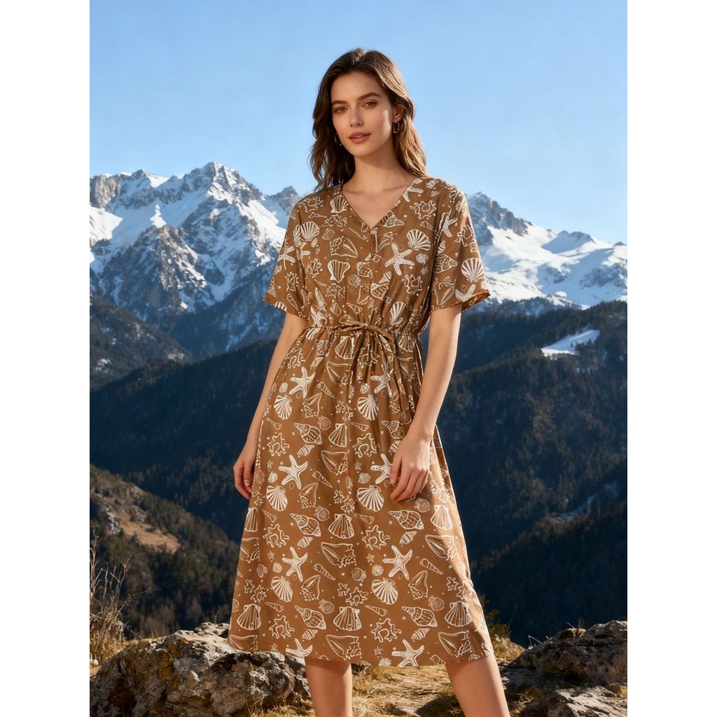 Vestido Midi Crepinho Estampado Amplo Moda Evangélica Veste 40 ao 46 Com Lastex que Ajusta