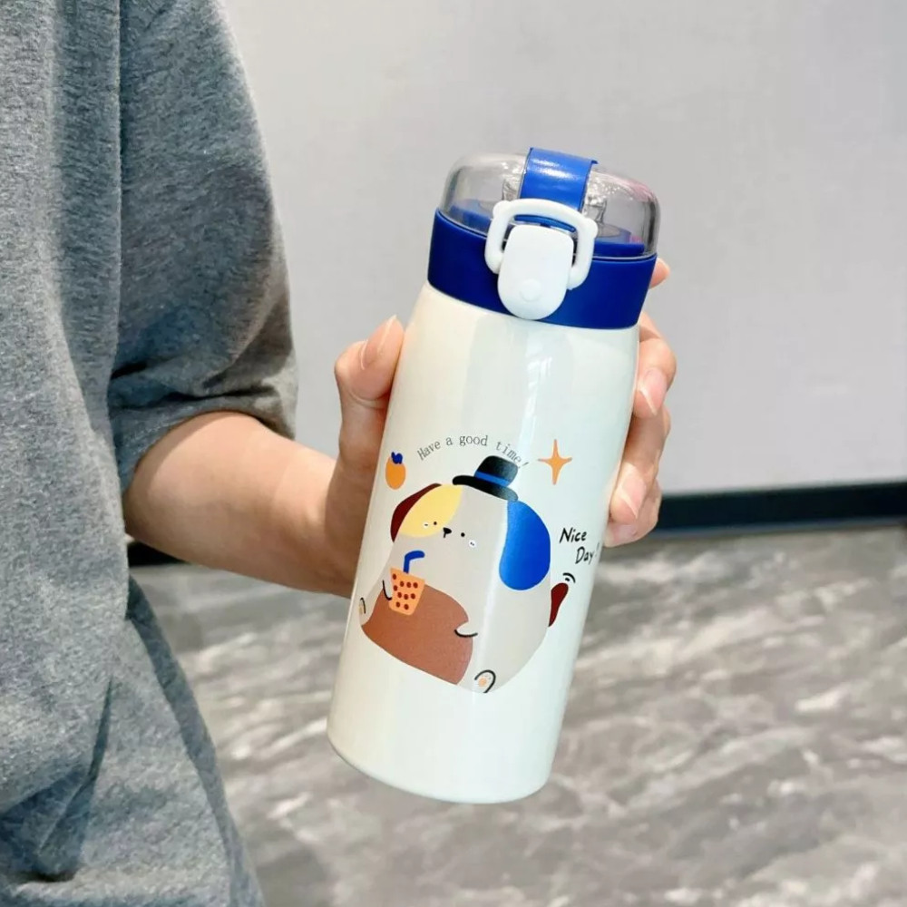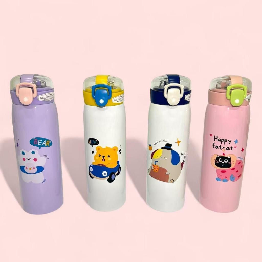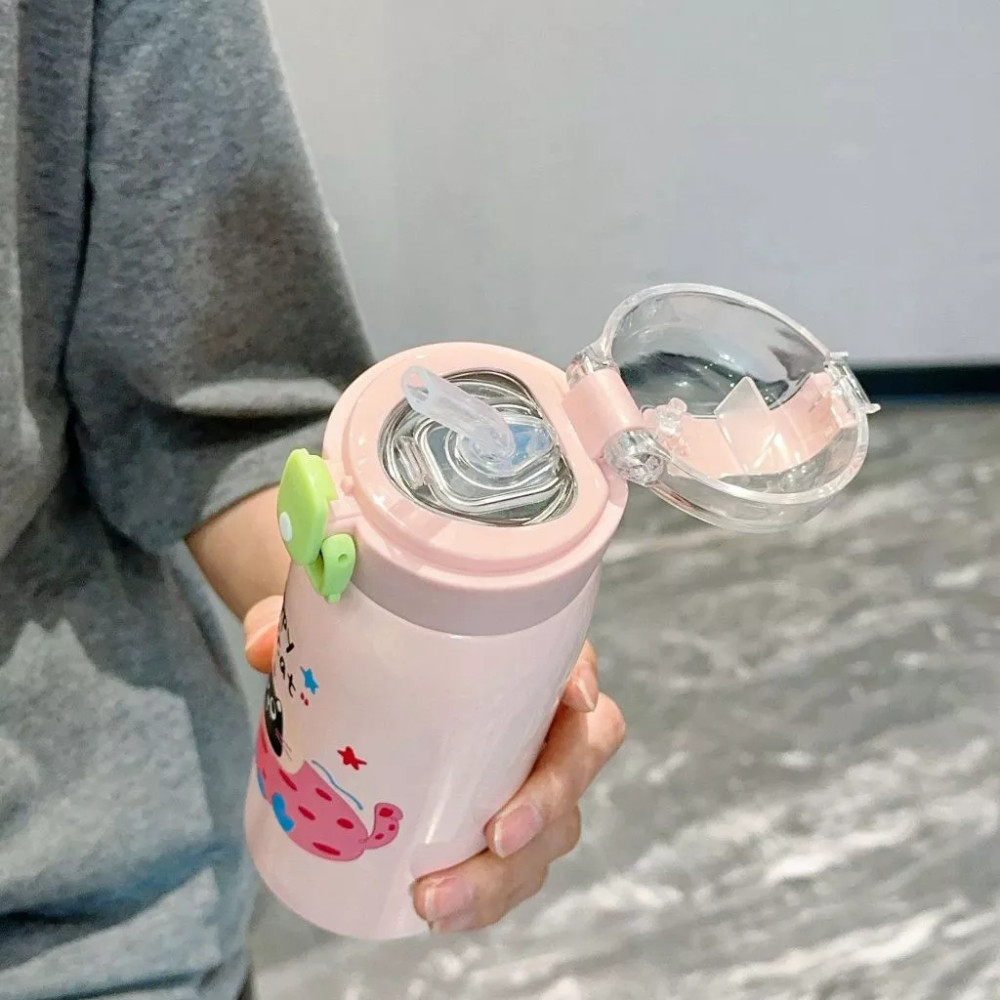 Garrafa Térmico em Aço Inox com Canudo e Desenho Kawaii Garrafa de Água 550ML