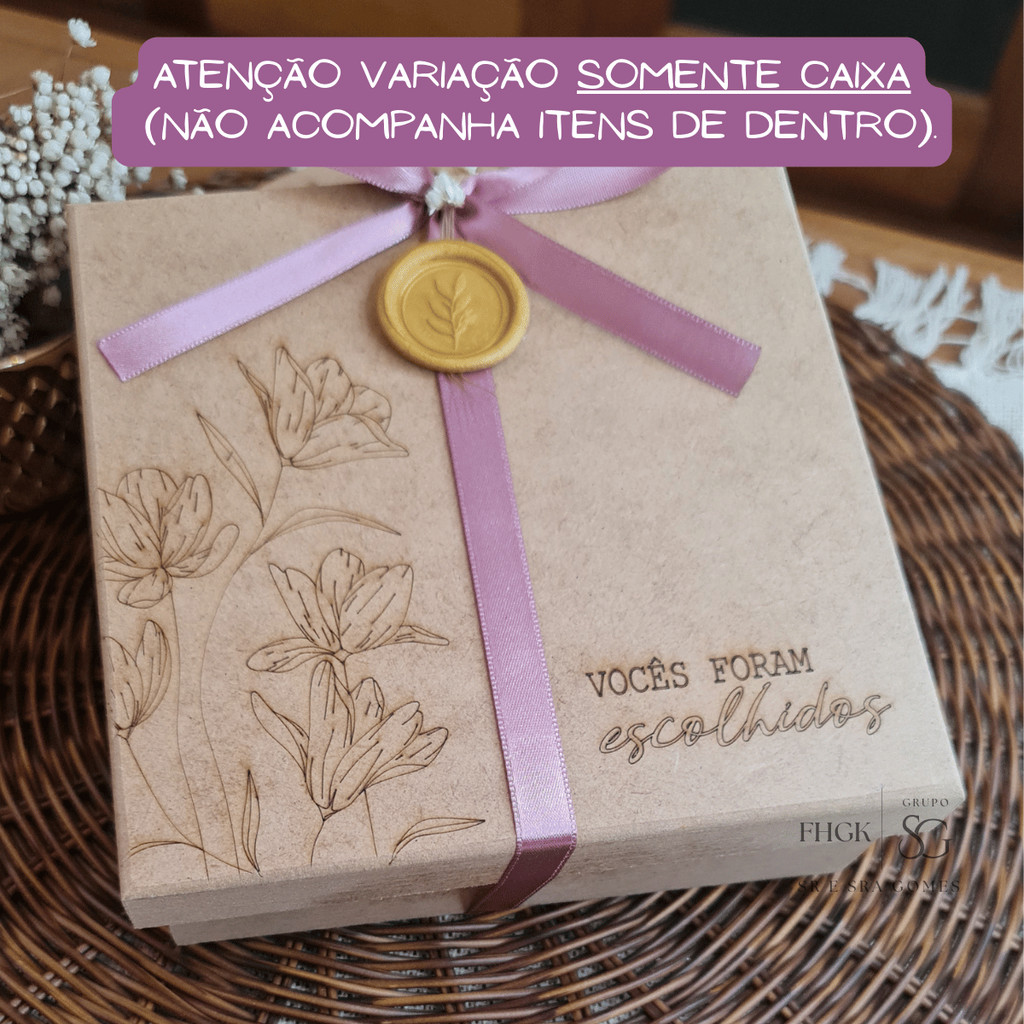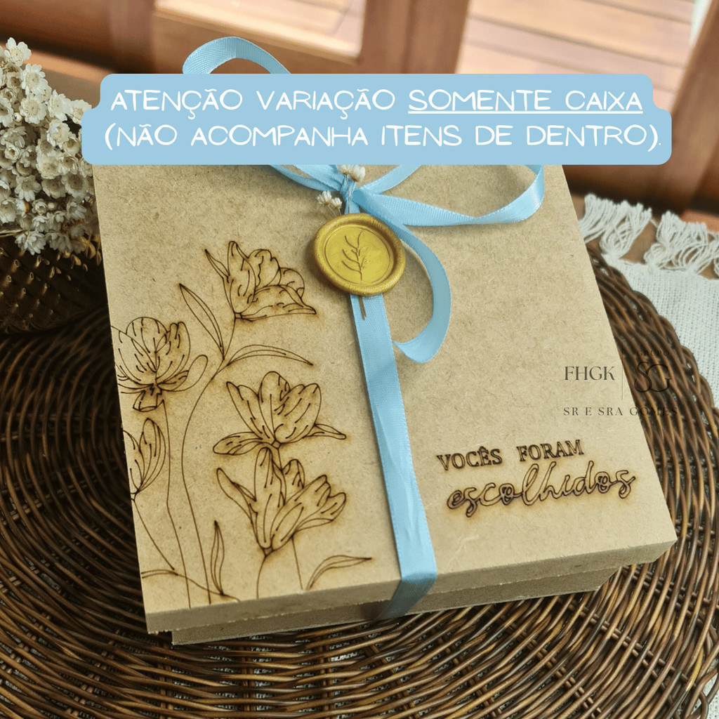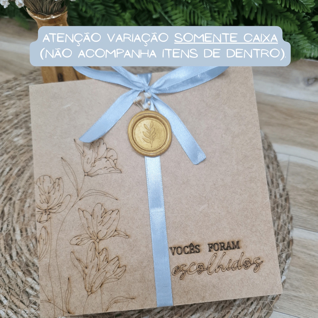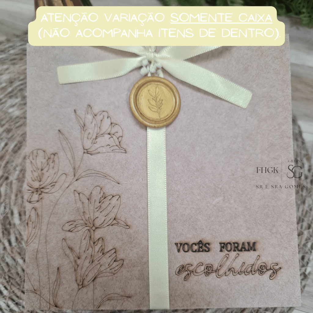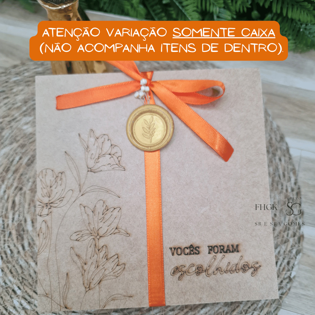 Caixa Convite Casal Para Padrinhos Decorada com Lacre de Cera e Gravata e Pulseira e Tags