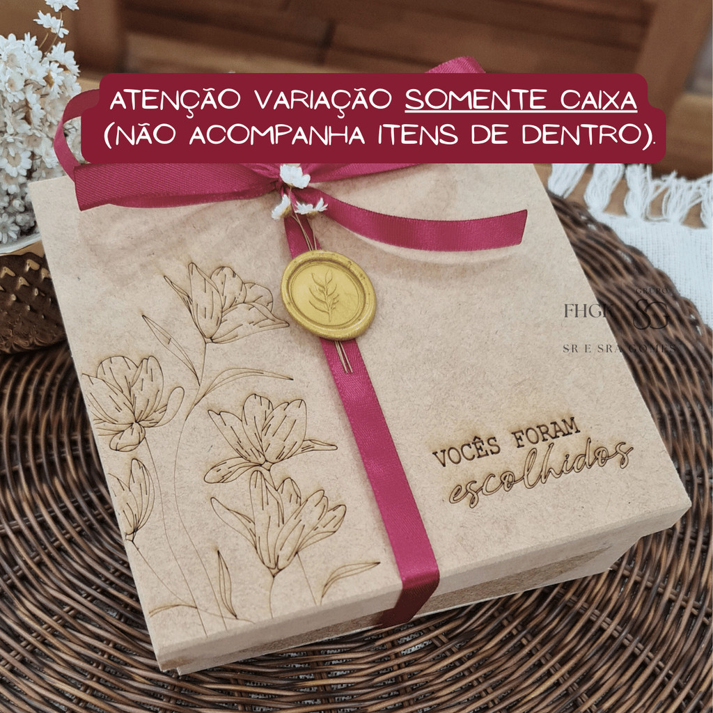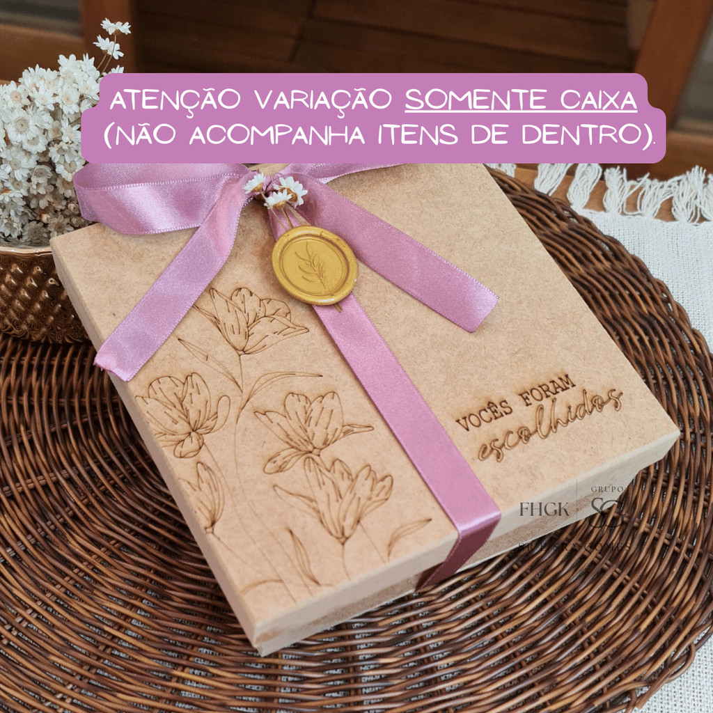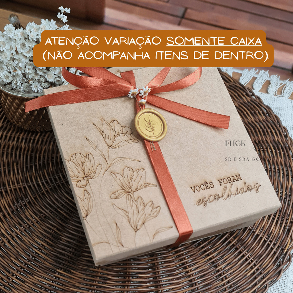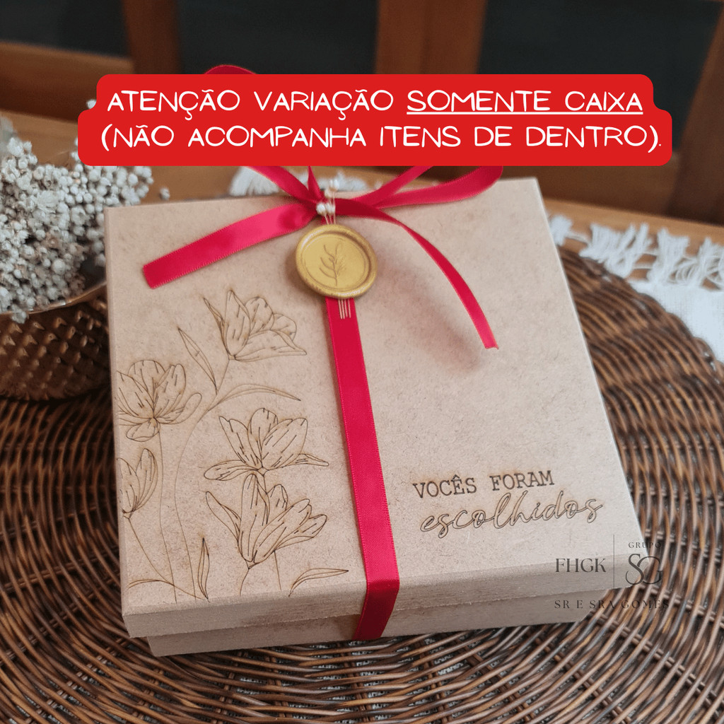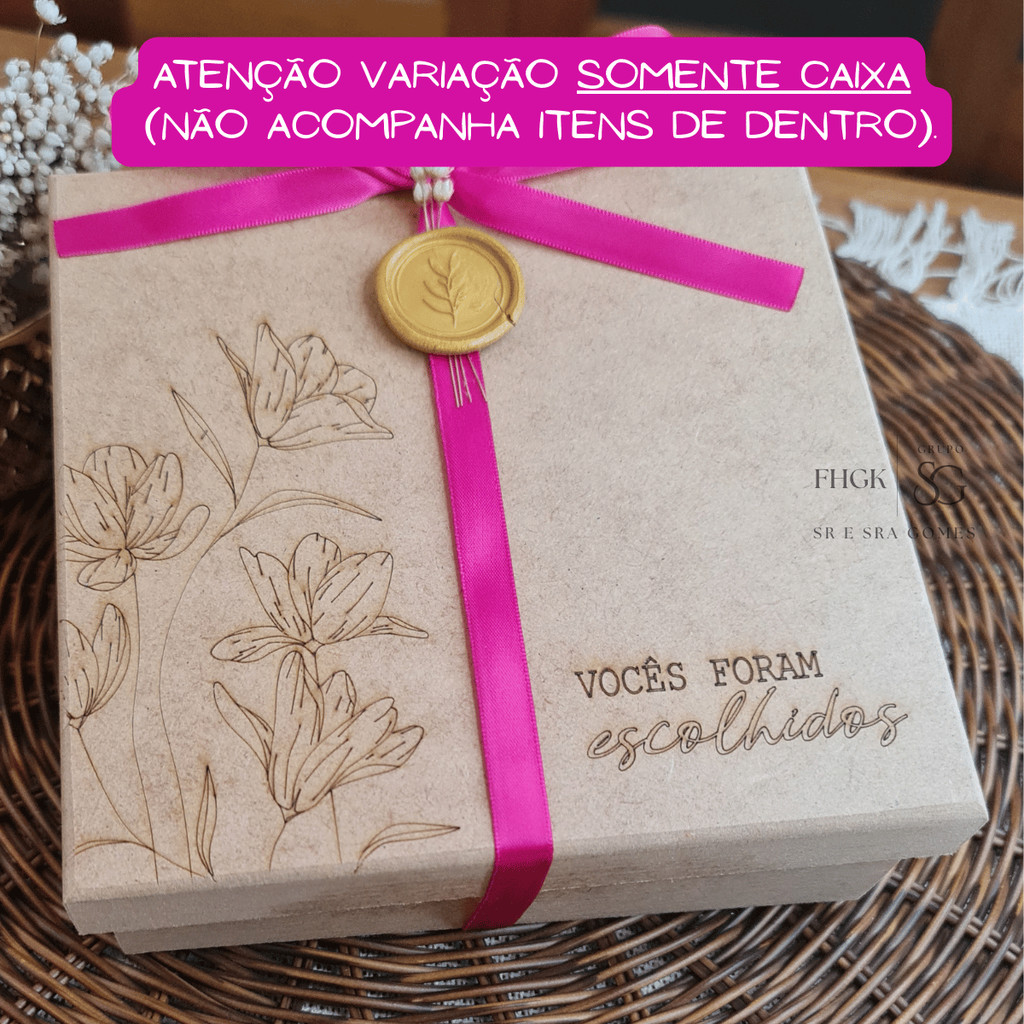 Caixa Convite Casal Para Padrinhos Decorada com Lacre de Cera e Gravata e Pulseira e Tags