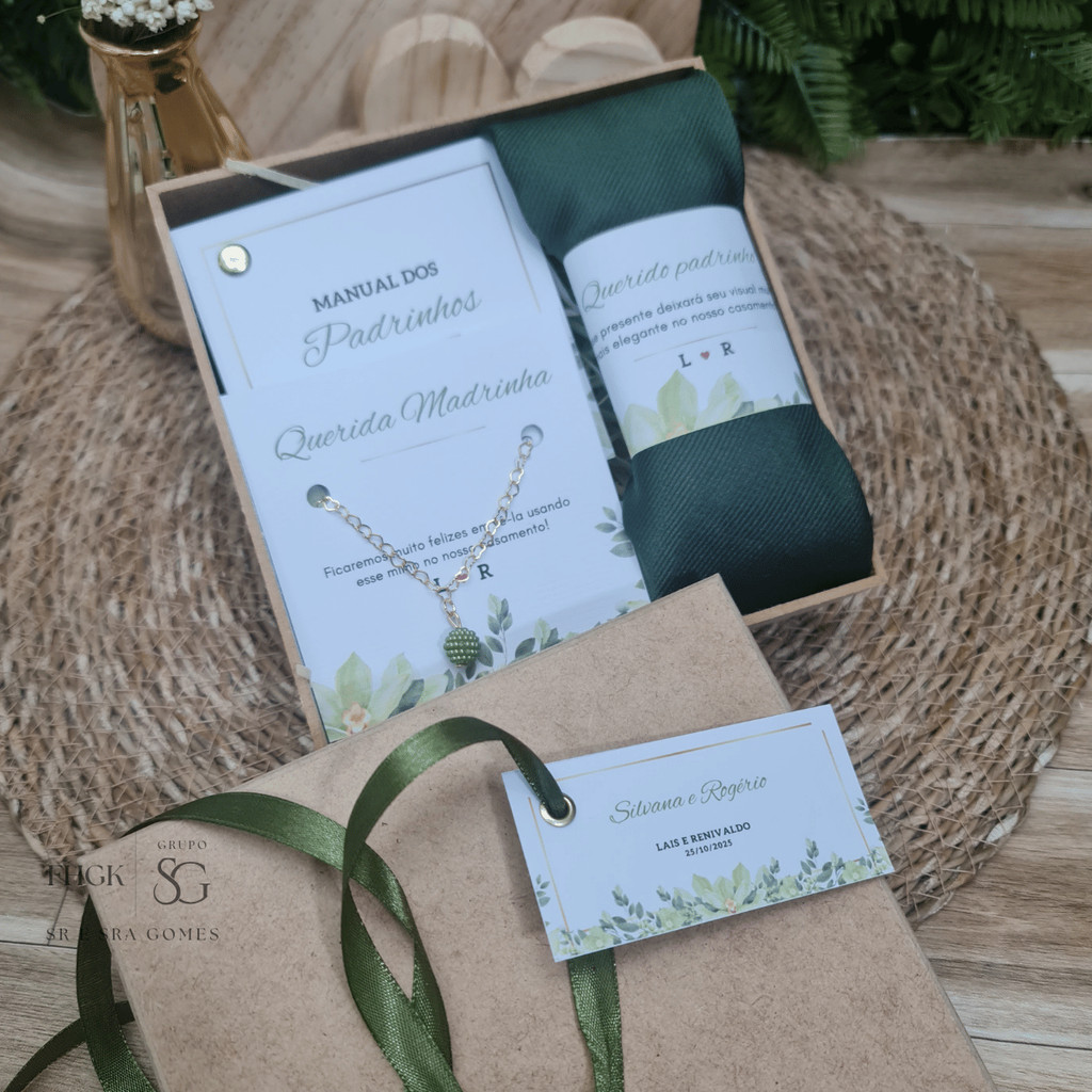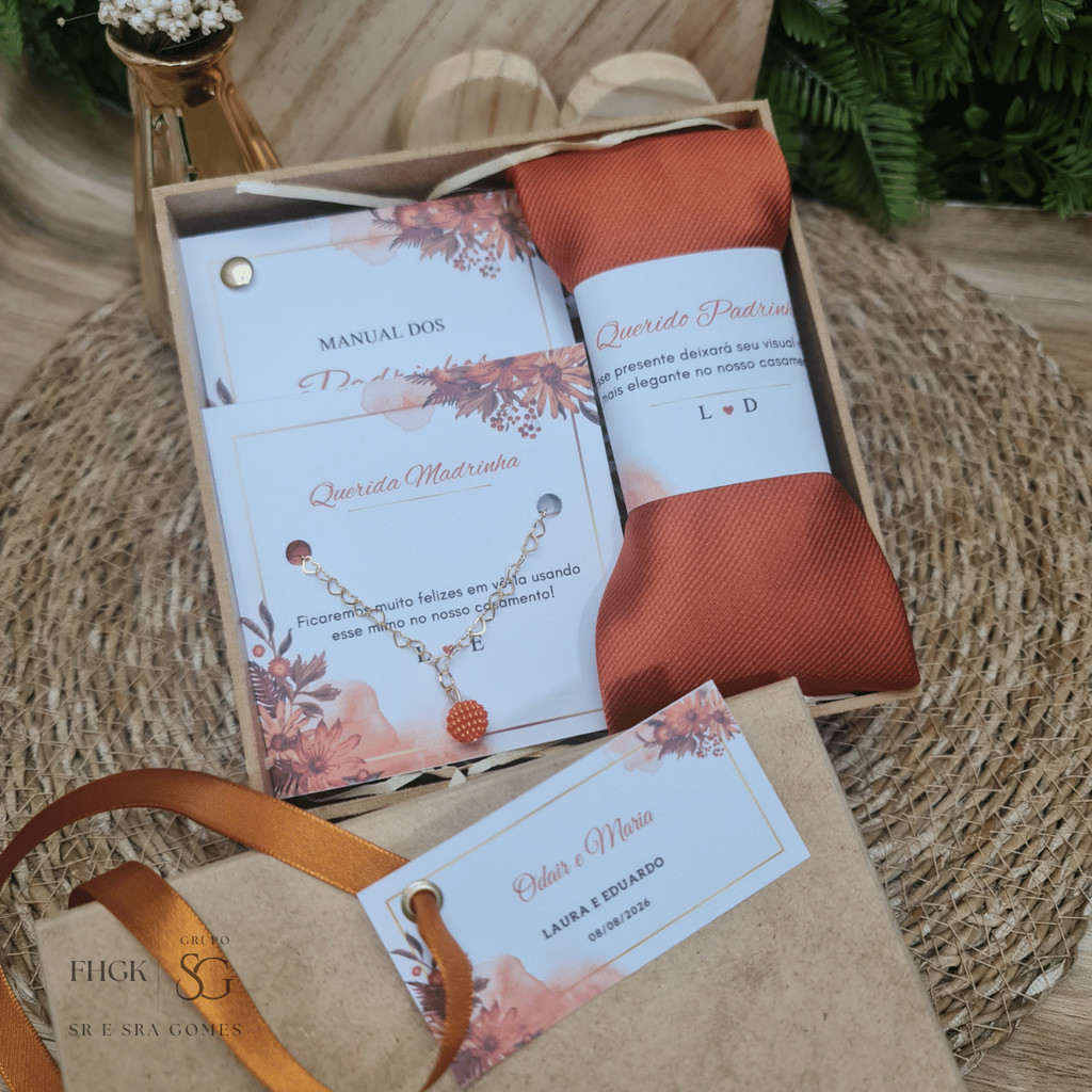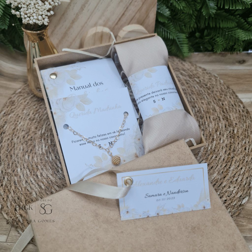 Caixa Padrinhos Completa Personalizada Gravata + Pulseira + Manual+ Caixa MDF