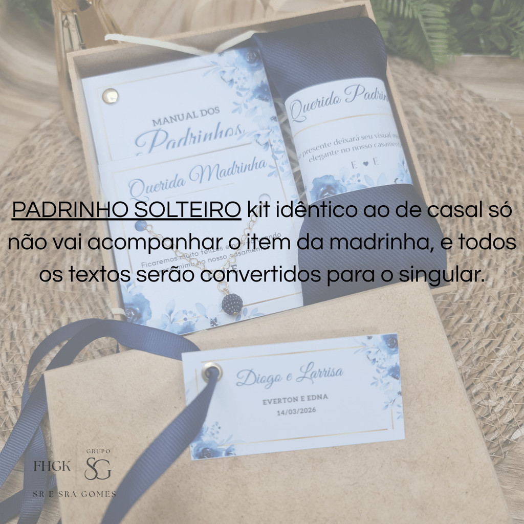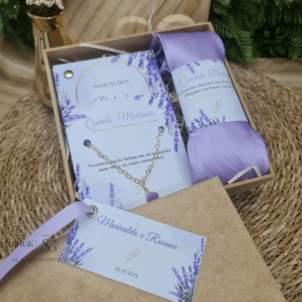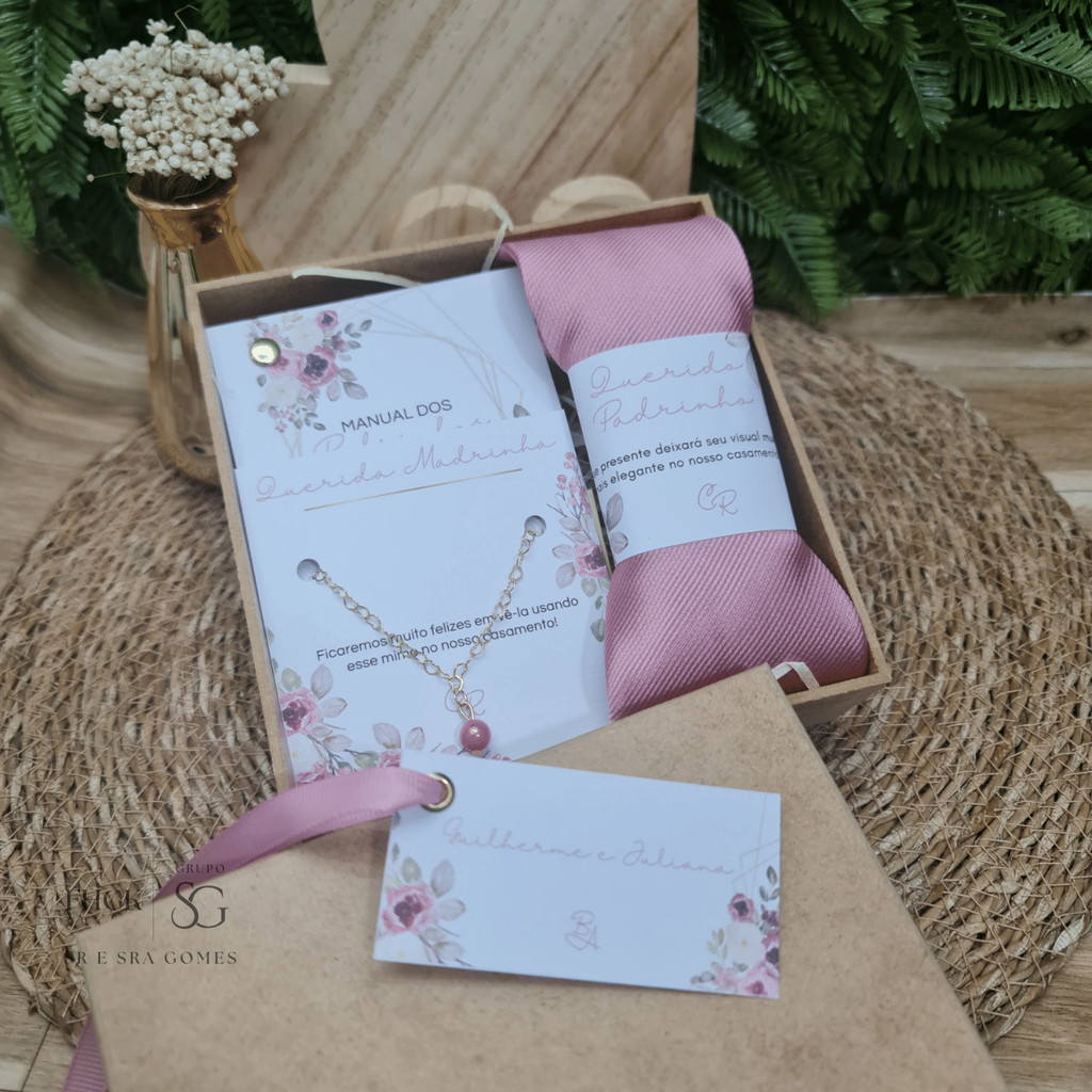 Caixa Padrinhos Completa Personalizada Gravata + Pulseira + Manual+ Caixa MDF