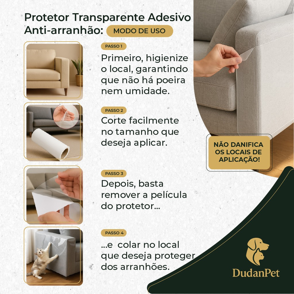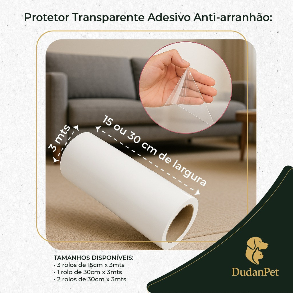 Protetor De Sofá Móveis Adesivo Gatos Pets Anti-arranhão Arranhador Transparente 30X300cm + BRINDE