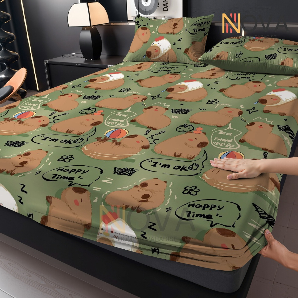 Capivara Jogo De Lençol 03 Peças Não desaparecerá SOLTEIRO CASAL QUEEN Percal Ponto Palito Estampado