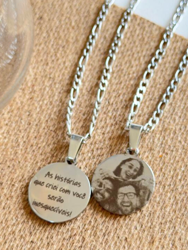 Corrente com Pingente Redondo Personalizado Inox