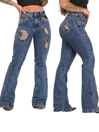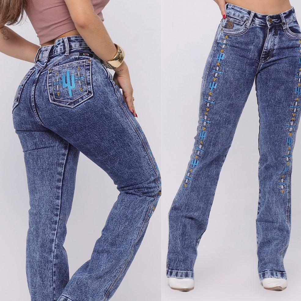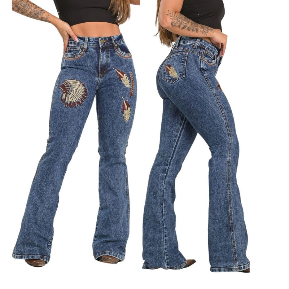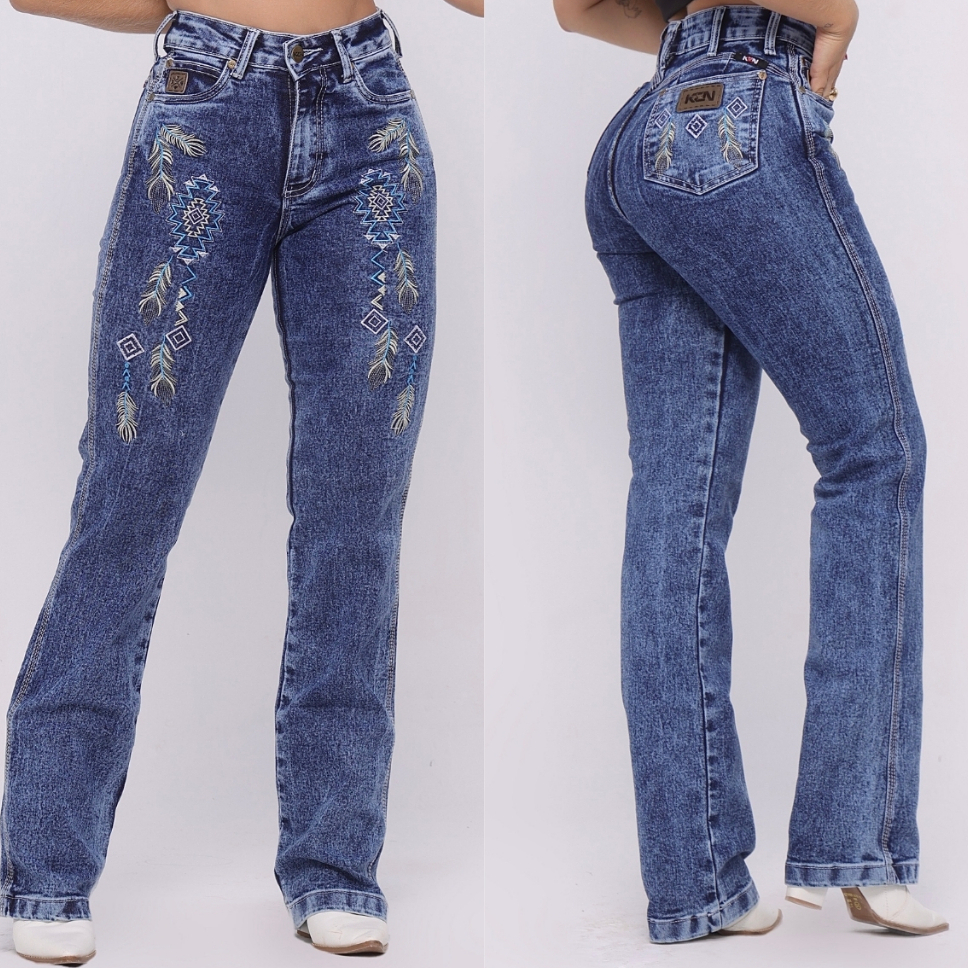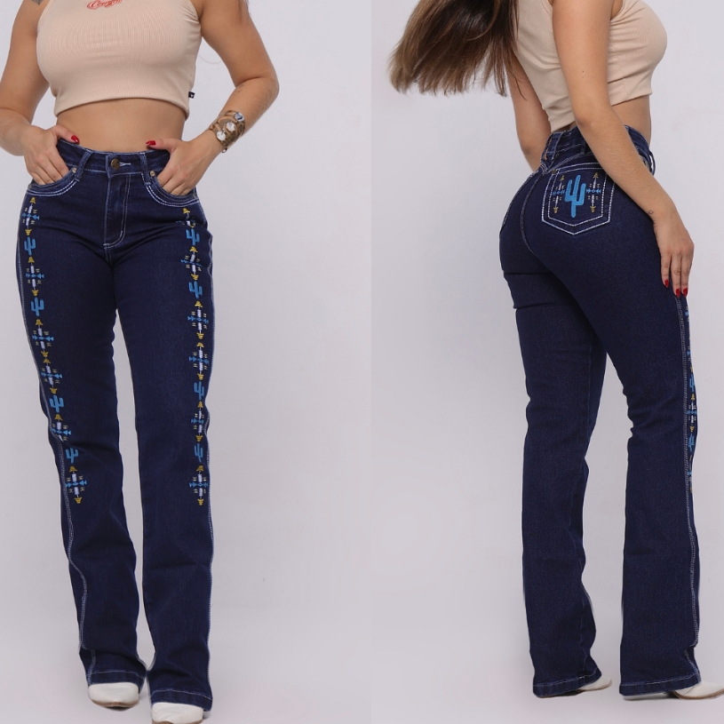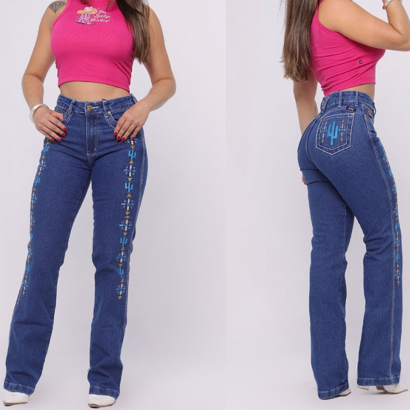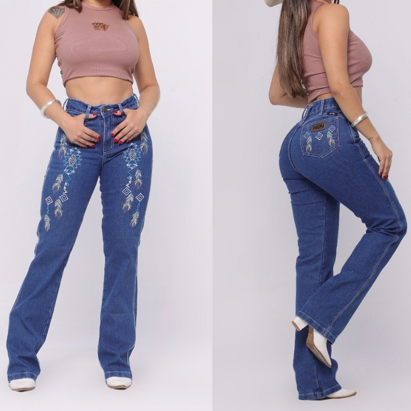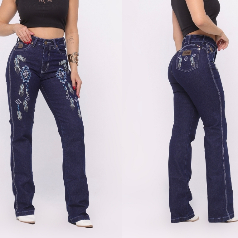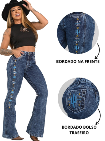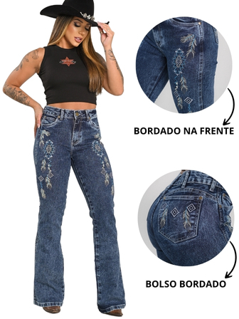 Calça Country Jeans Feminina Bordada Cintura Alta com Lycra linha PREMIUM
