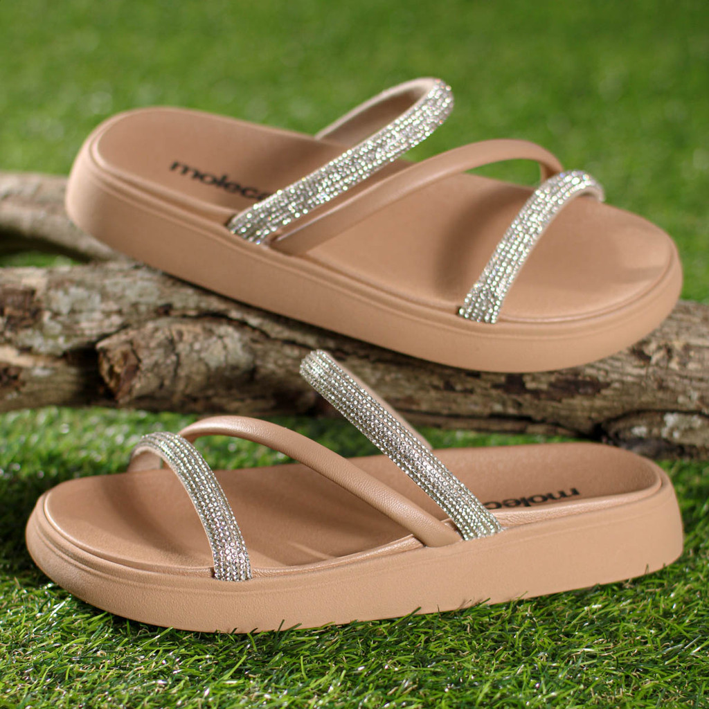 Sandália Moleca Tira Tripla Strass Rose e Prata - Feminino