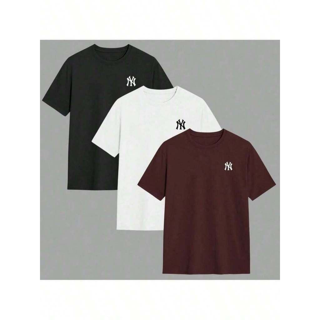 Kit 3 Camisetas NY Masculina Gola Redonda Camisa Fio 30.1 Blusa 100% Algodão