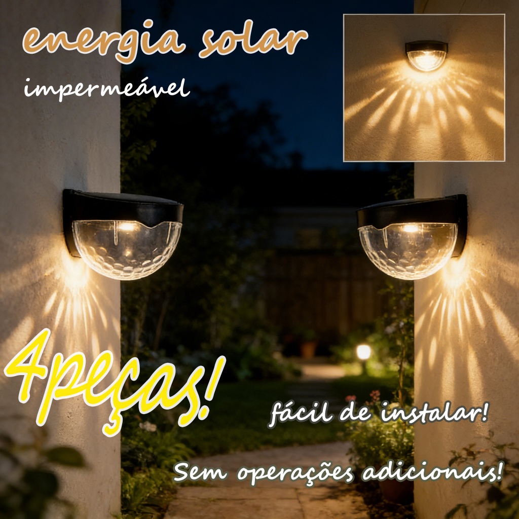 Luminária Solar Meia-Lua 4 Peças para Parede, Escada e Cerca - Luz Noturna Externa