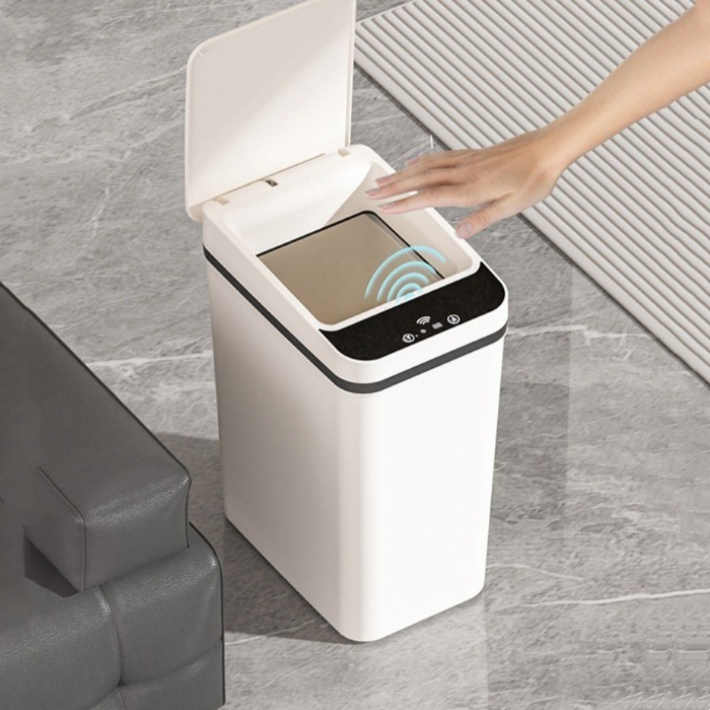Lixeira automática de indução inteligente: toque leve de um botão fácil de abrir, adequada para casa, quarto, banheiro,
