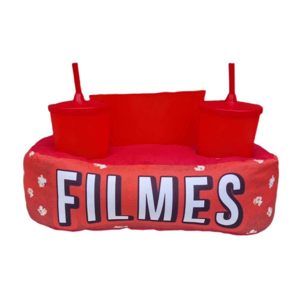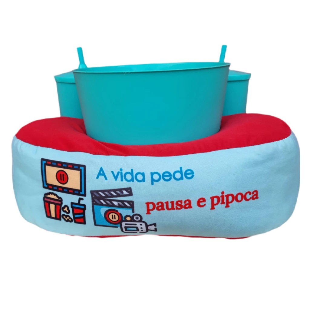 Almofada Porta Pipoca + Balde 3,5 l + 2 copos 550 ml STITCH - Cinema Filme em Casa Decoração Conforto