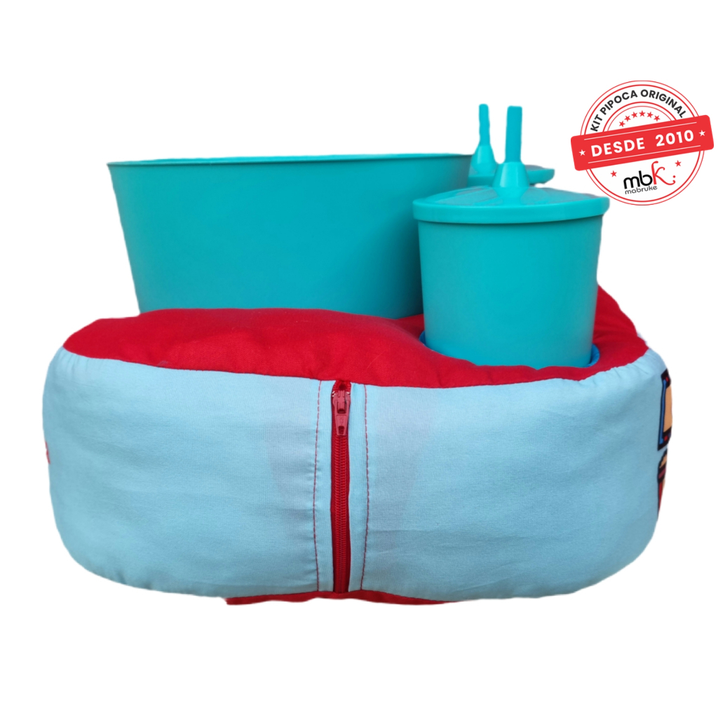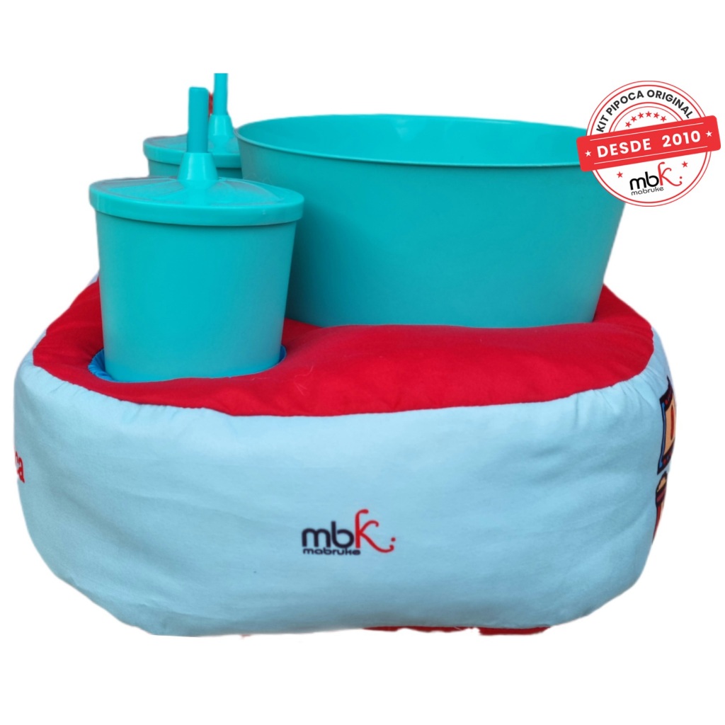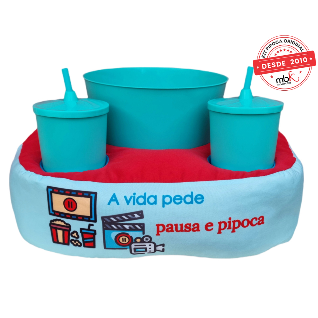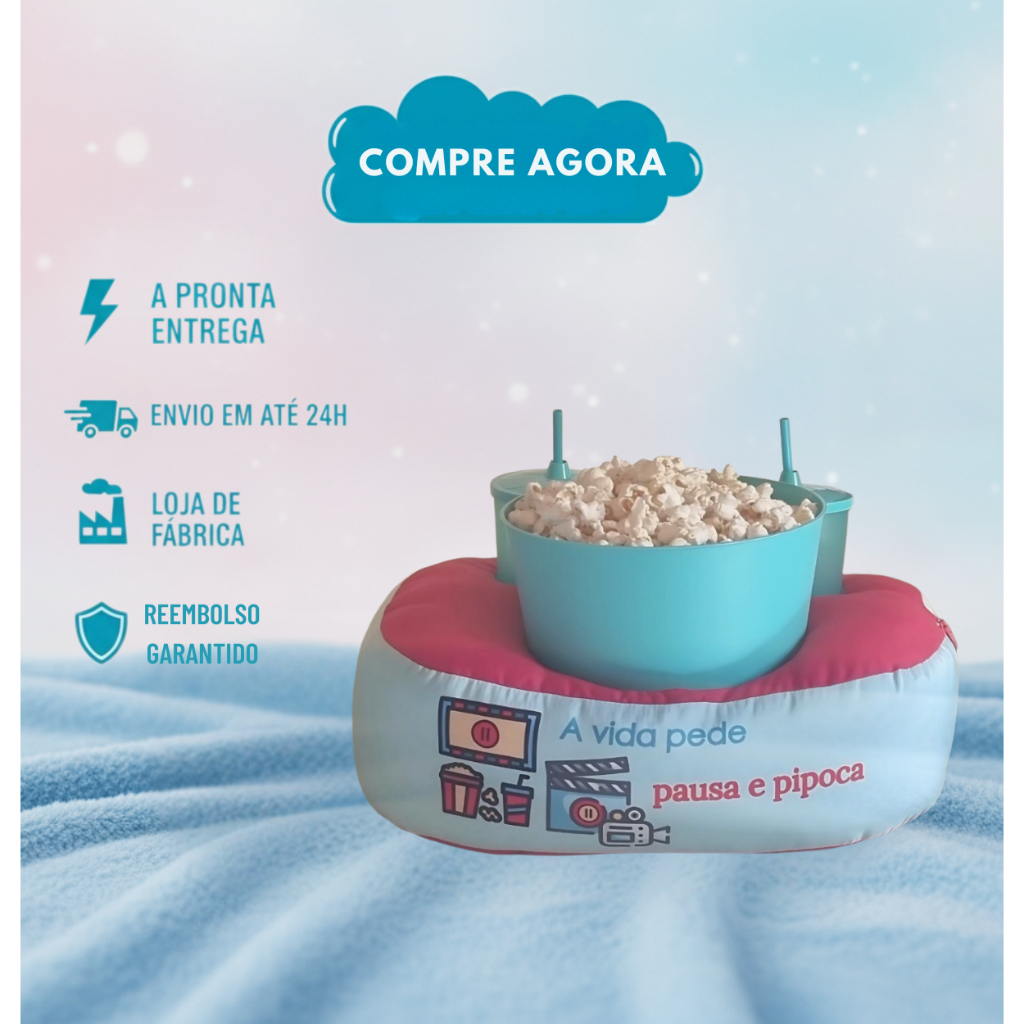 🍿Kit Pipoca Duplo PAUSA E PIPOCA Mabruke – Presente Criativo para Namorados – Almofada Porta Copos Balde Cinema em Casa