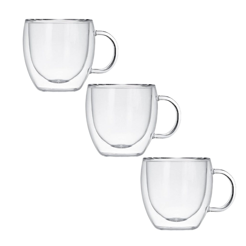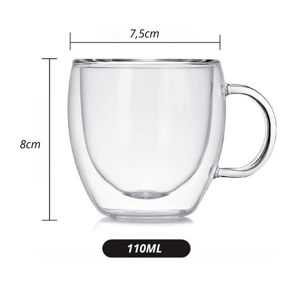 Xicara copo Caneca Parede Dupla de Vidro Borossilicato Cafe Chas Expresso 110ml