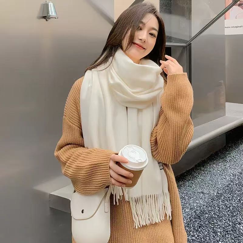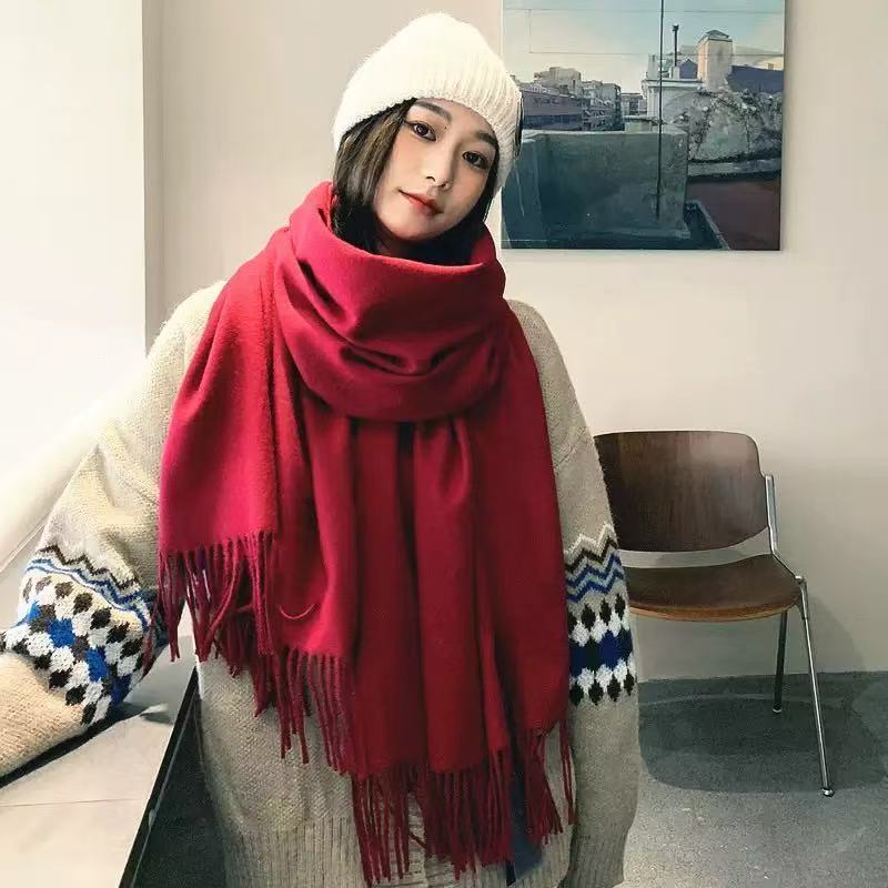 Cachecol feminino imitação de cashmere inverno fino 220garamas com franjas
