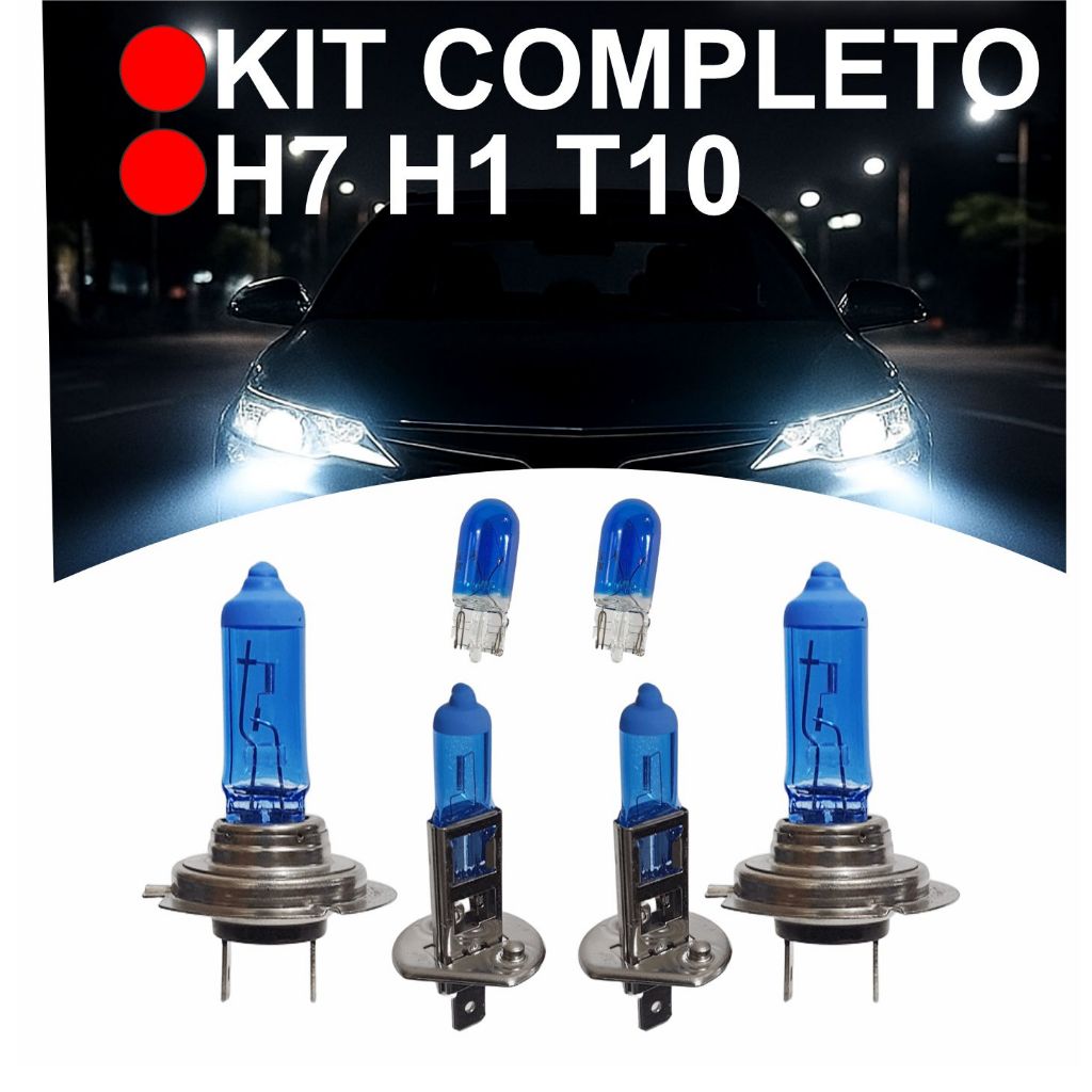 Kit 6 Lampadas H7 H1 8500K TechOne Super Brancas + T10 Foco Duplo