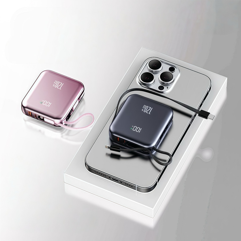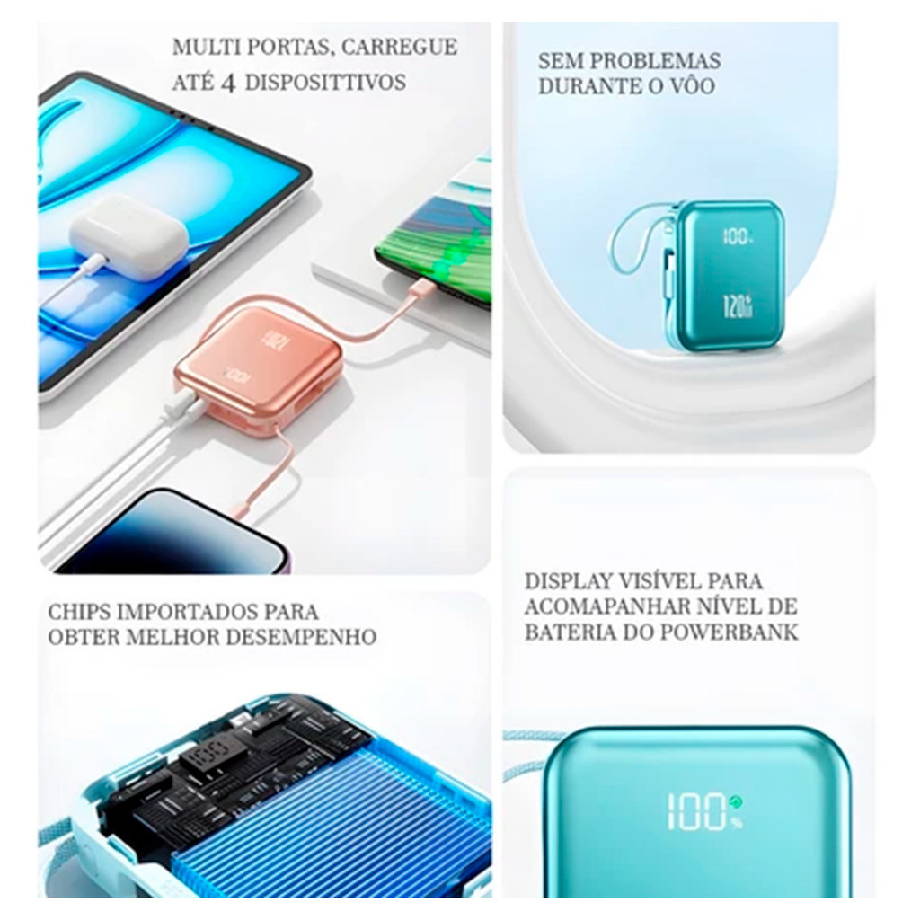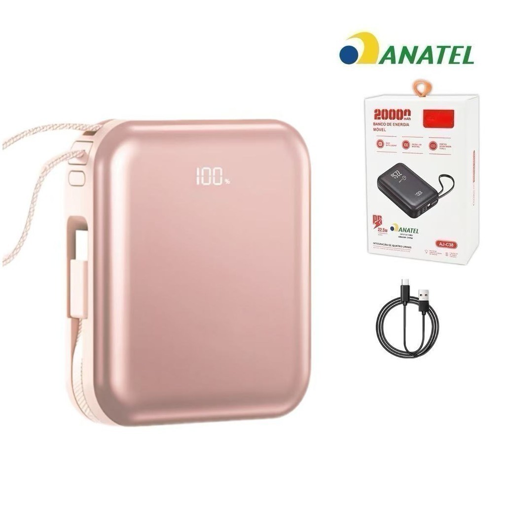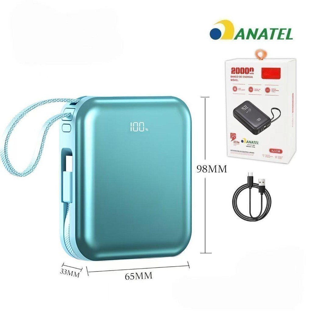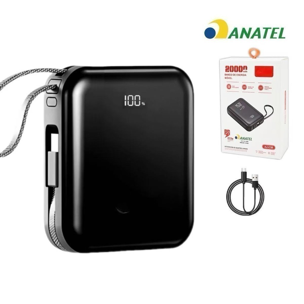 mini power bank portátil 20.000 mAh com IOS e cabo Tipo C