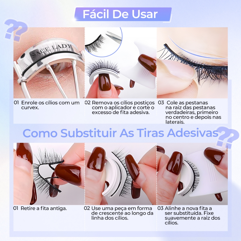 cílios postiços SACE LADY Naturais Volume Natural Macios Reutilizáveis