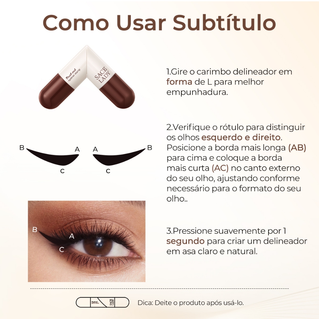 Caneta Delineadora Gatinho 2em 1 Profissional Mood SACE LADY Cor Preto Efeito Mate