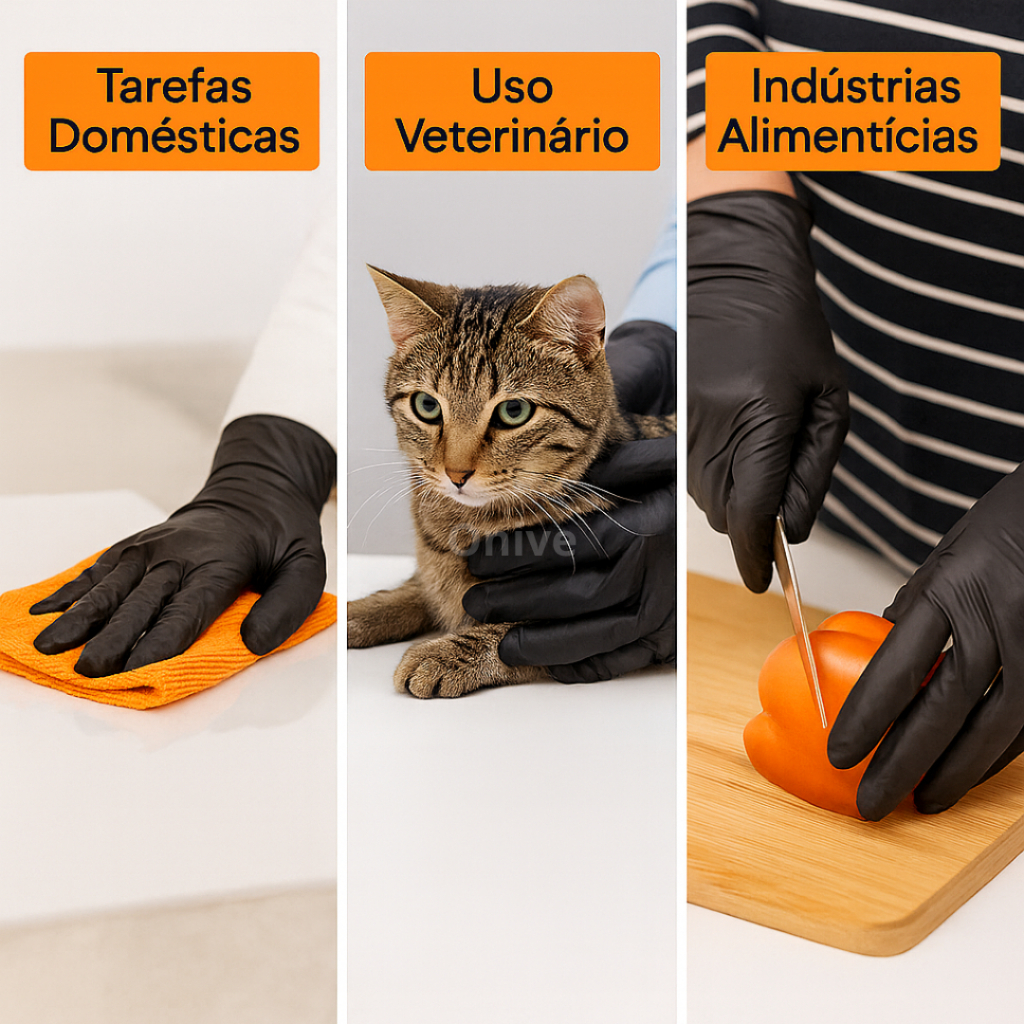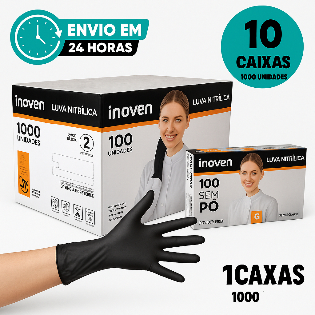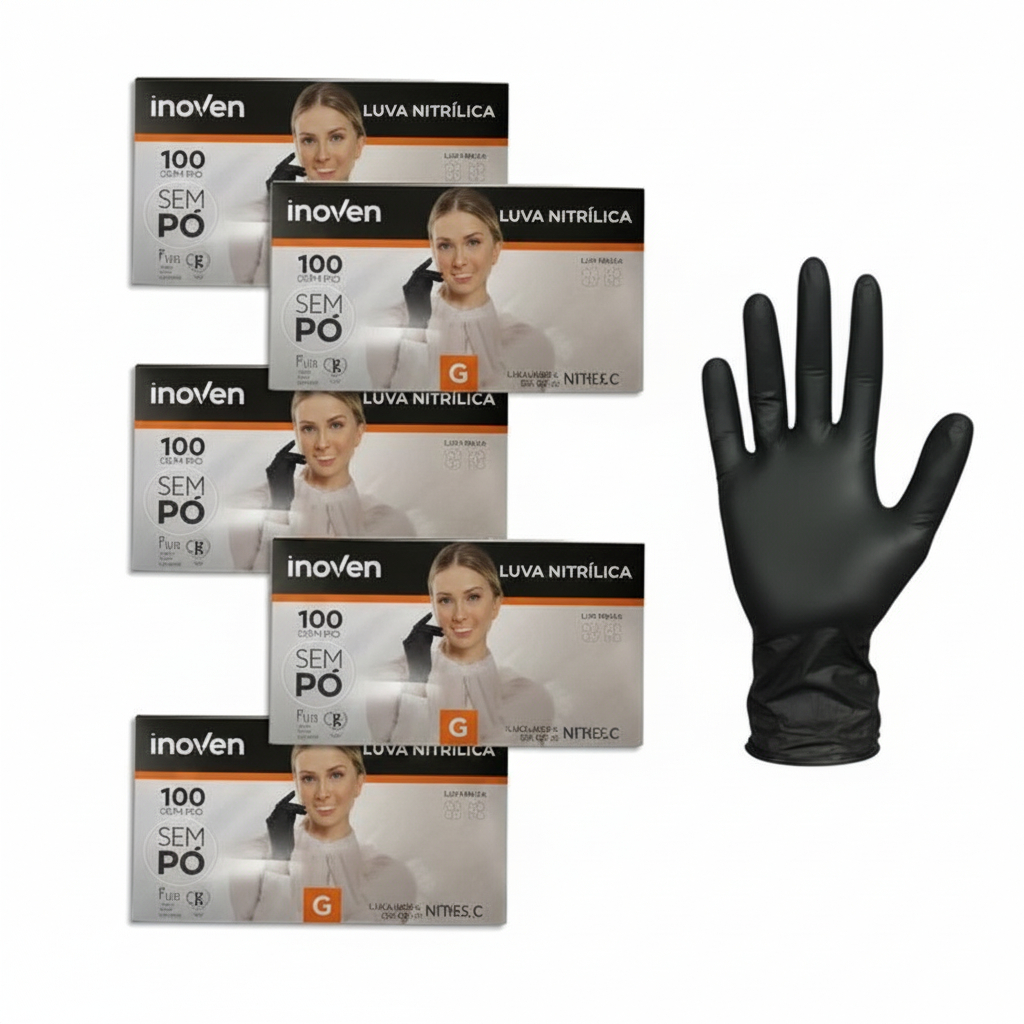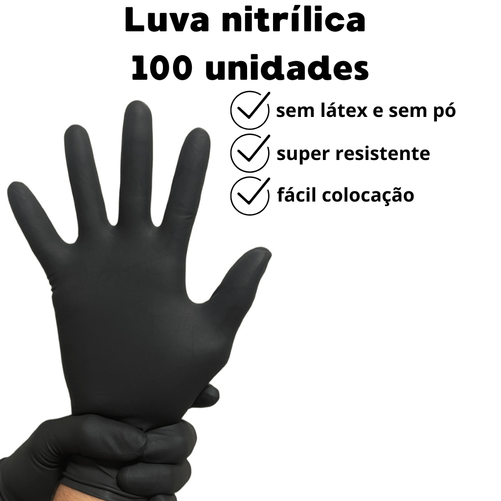 Luva Vinil Preta Descartável Sem Pó Resistente 100 Unidades