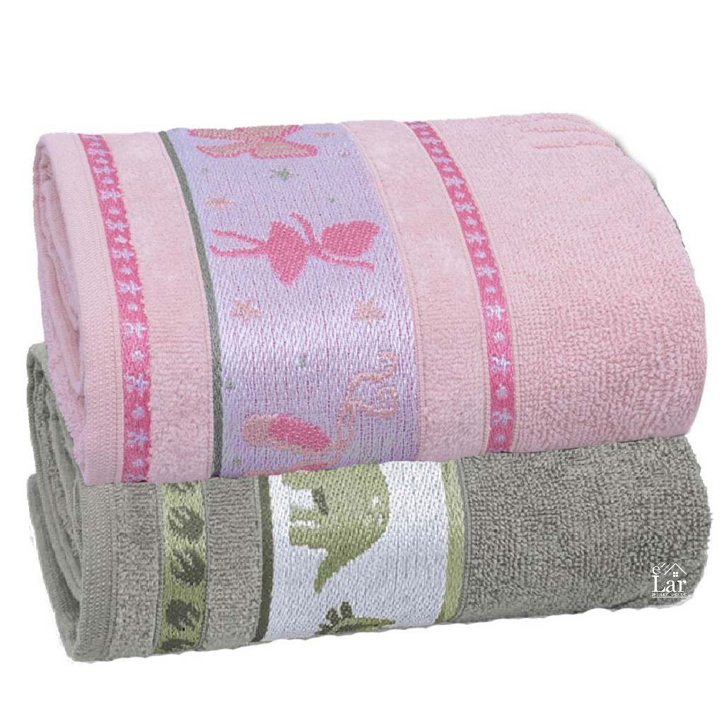 Kit 2 Toalhas infantil kids de Banho Algodão Meninos Meninas Toque Aveludado