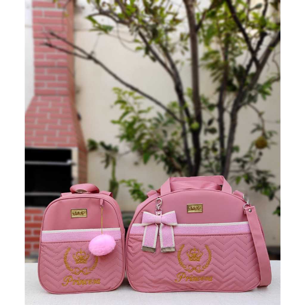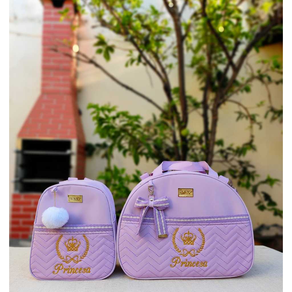 kit de Bolsas Maternidade com Fita e Coroa Bordada (2 Peças)