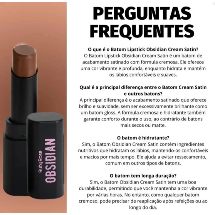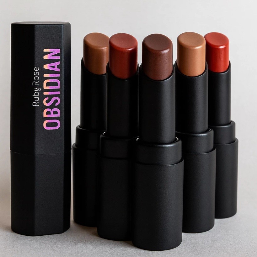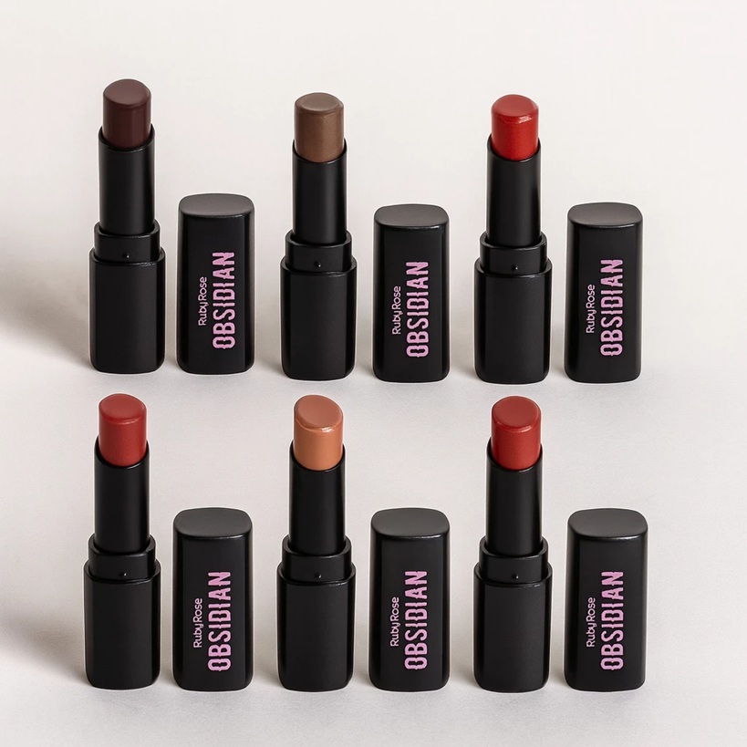 Batom Cream Satin Obsidian Ruby Rose – Alta Cobertura, Conforto e Brilho, 6 cores