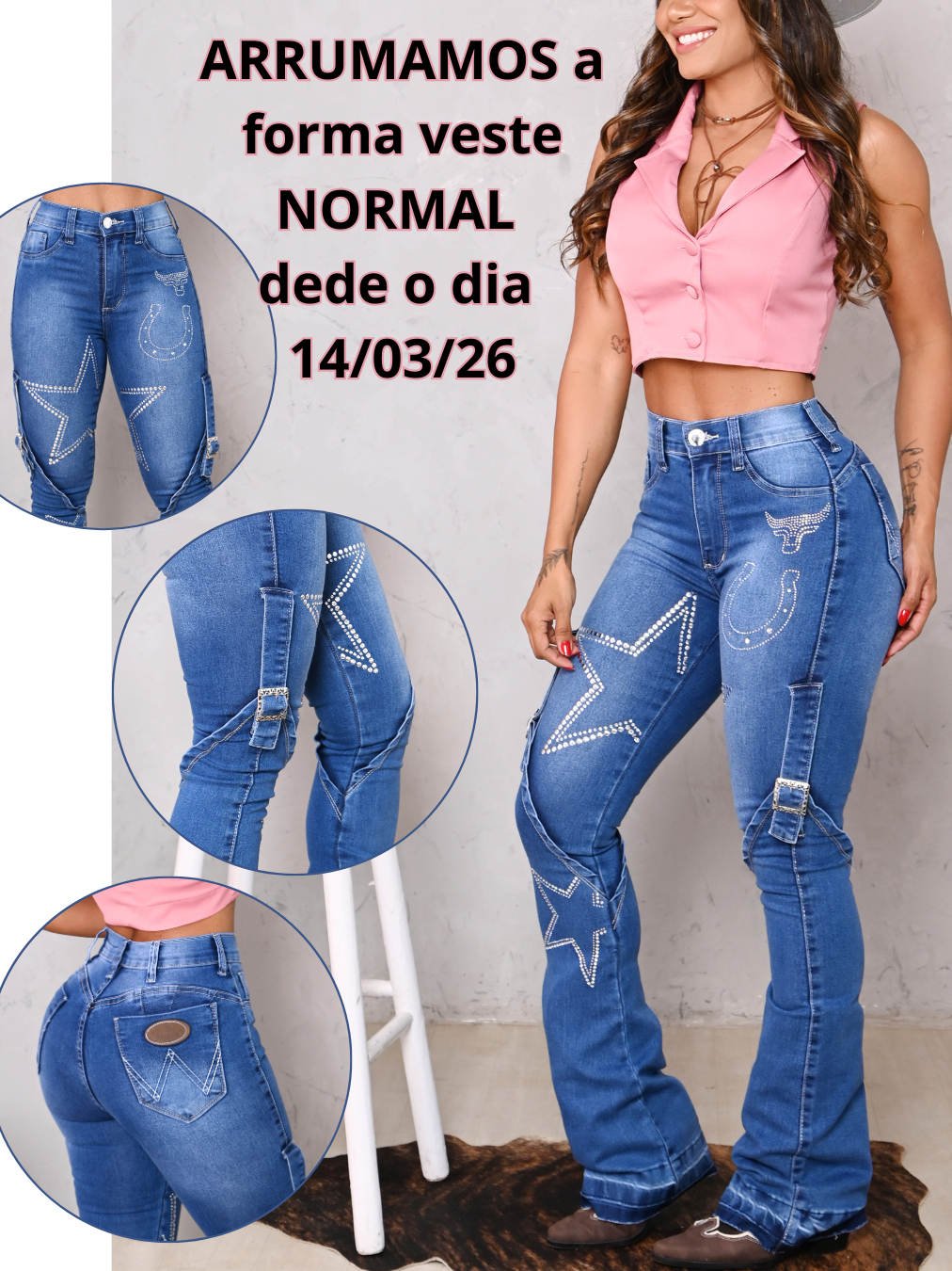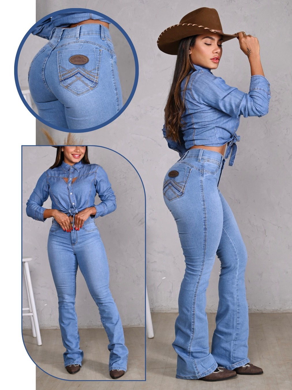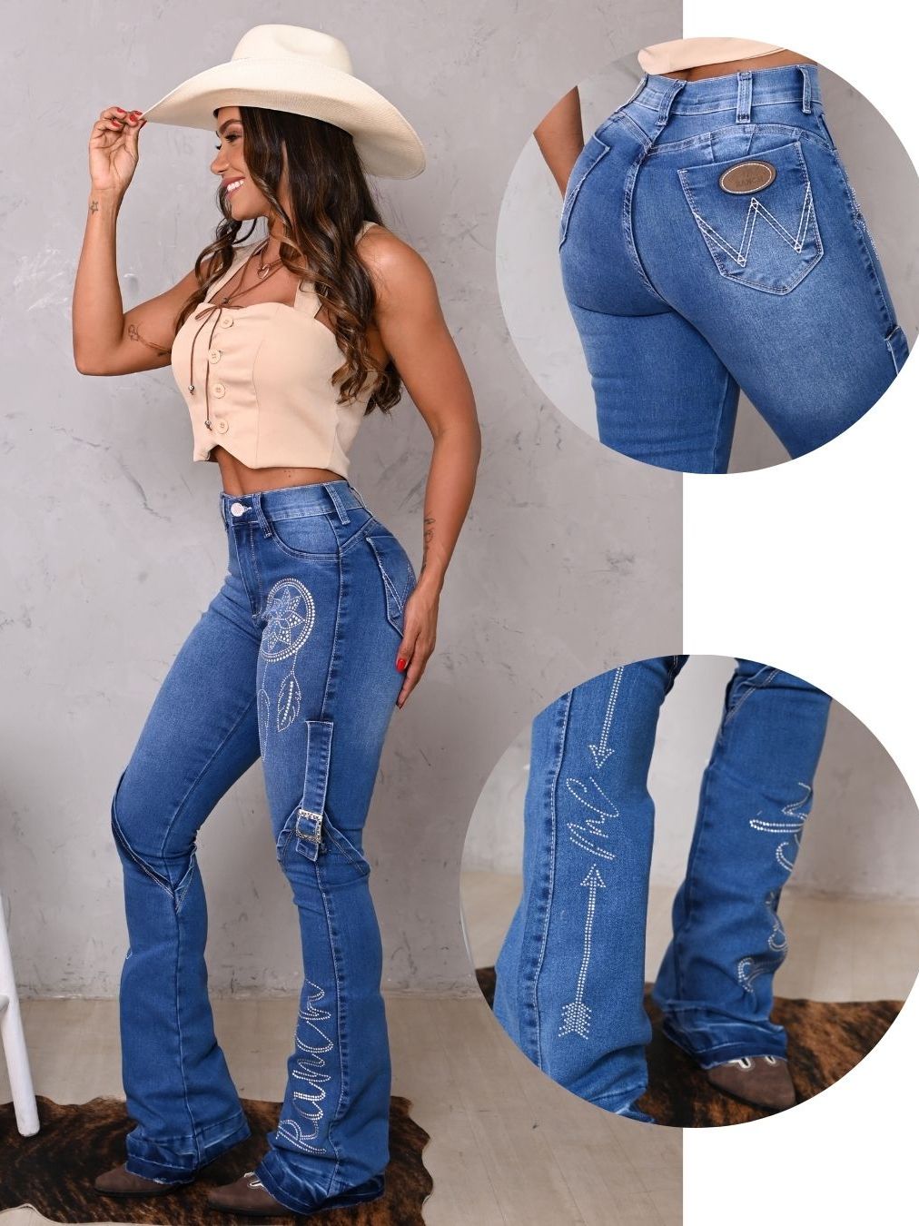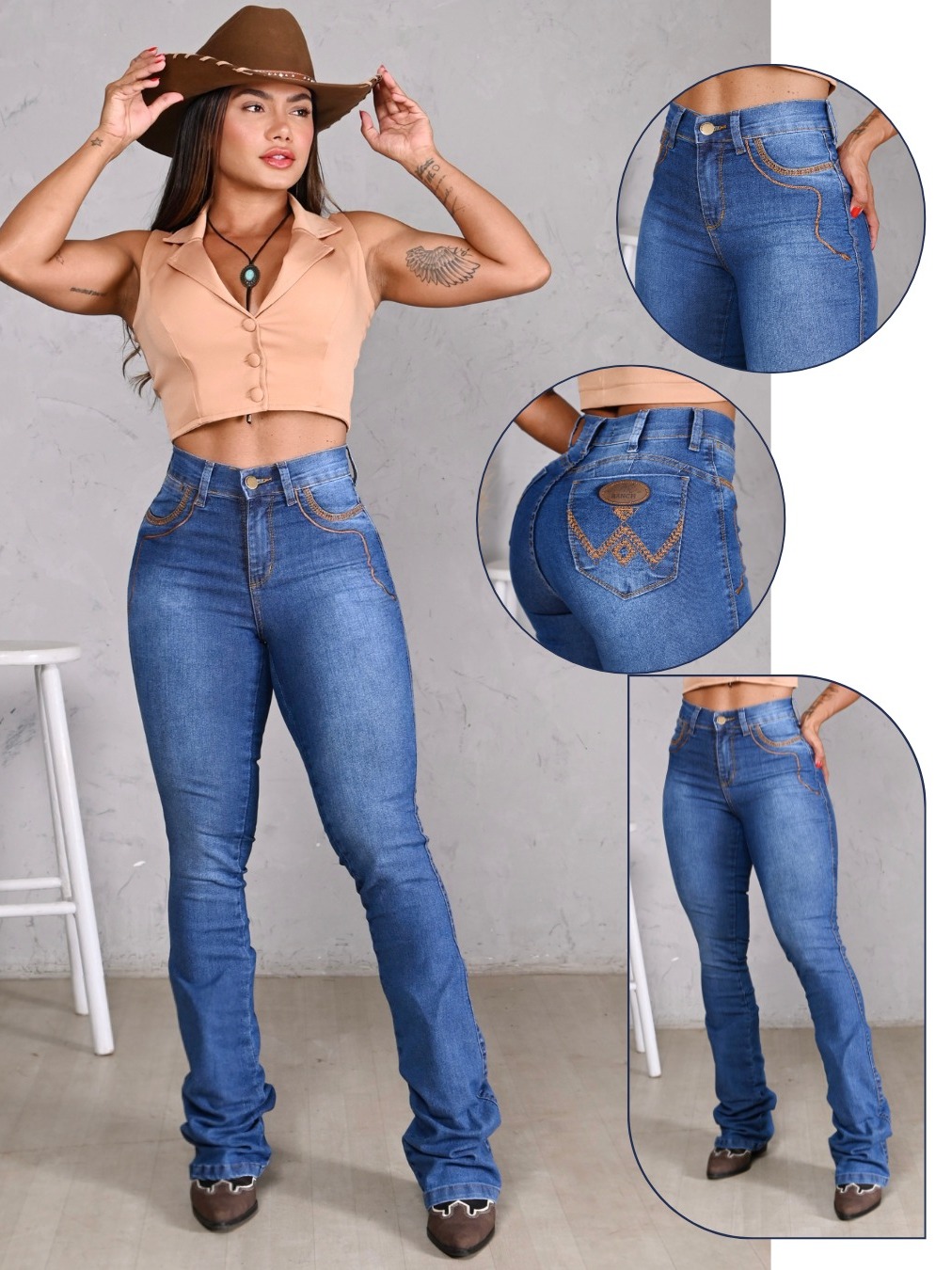 Calça Jeans Tradicional Feminina Country Com Elastano Bordada Premium Flare Boot Coot