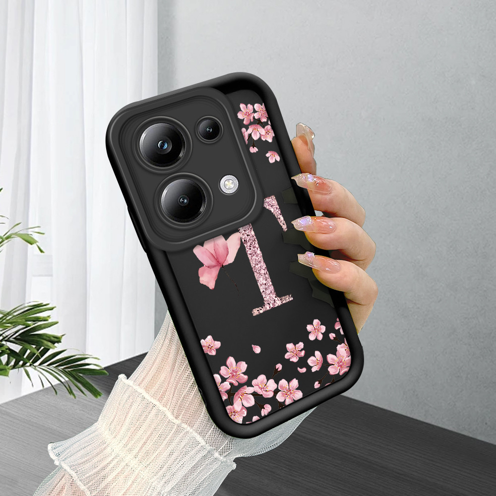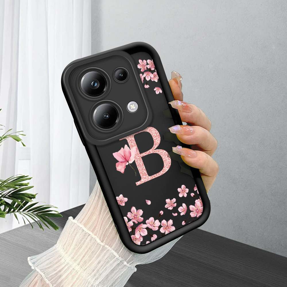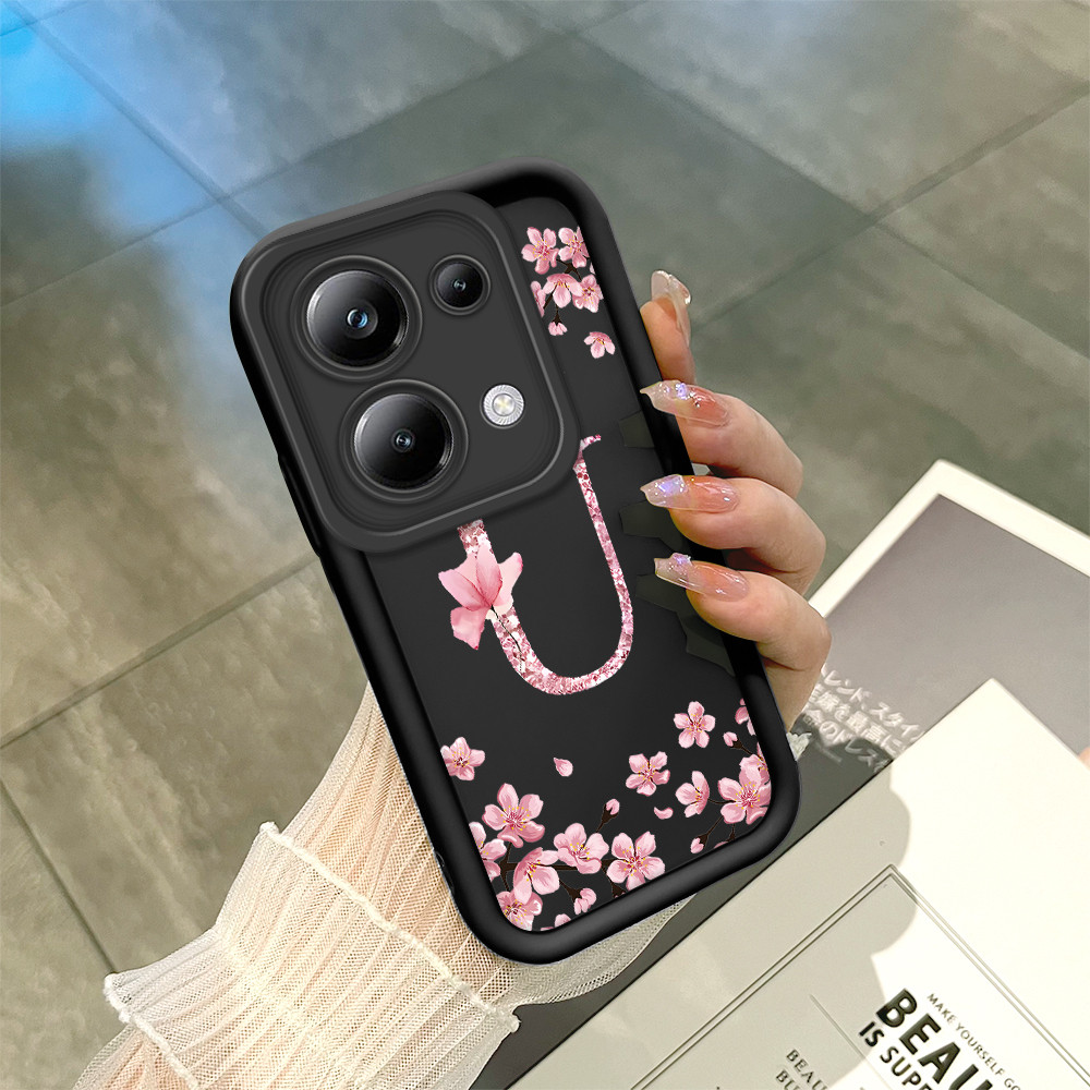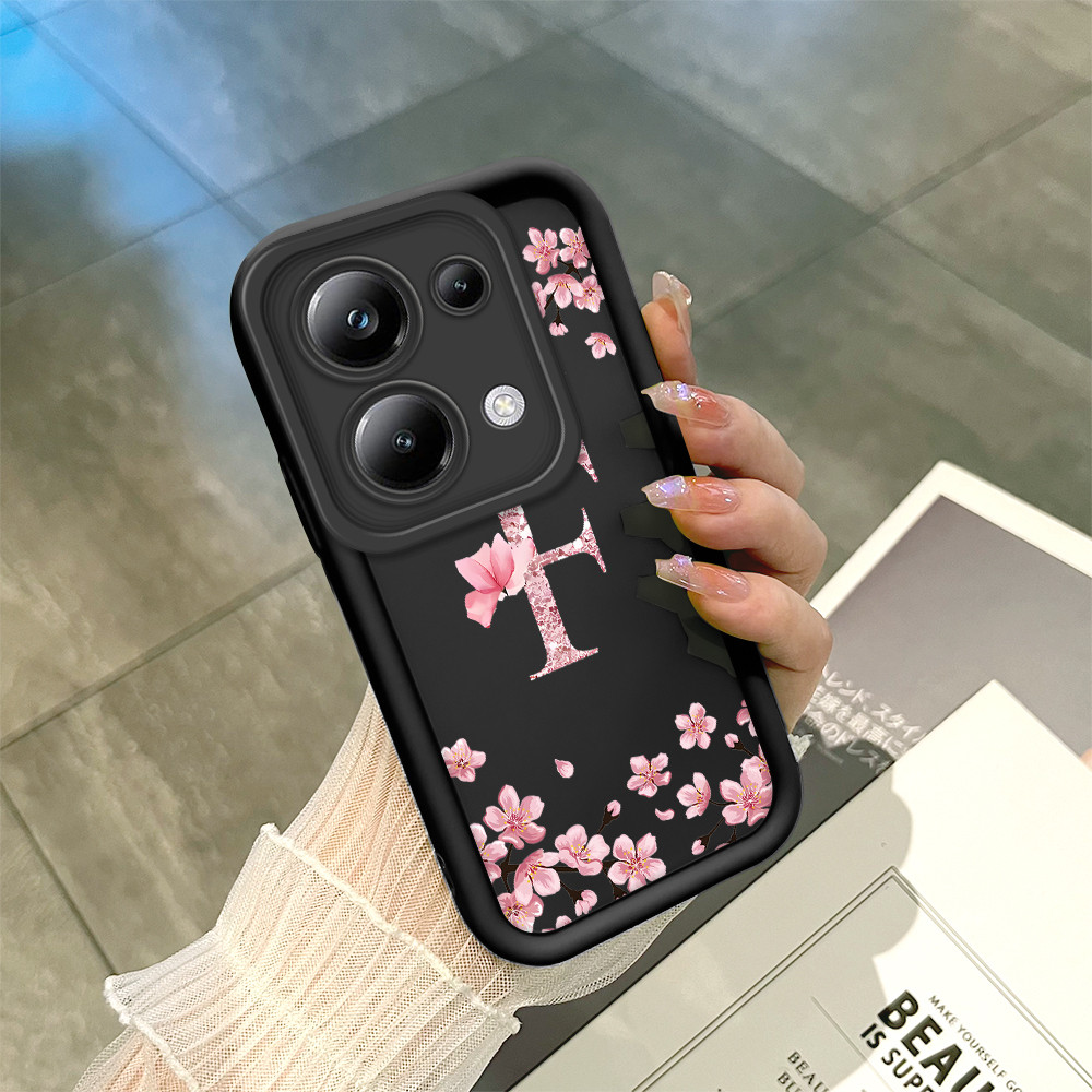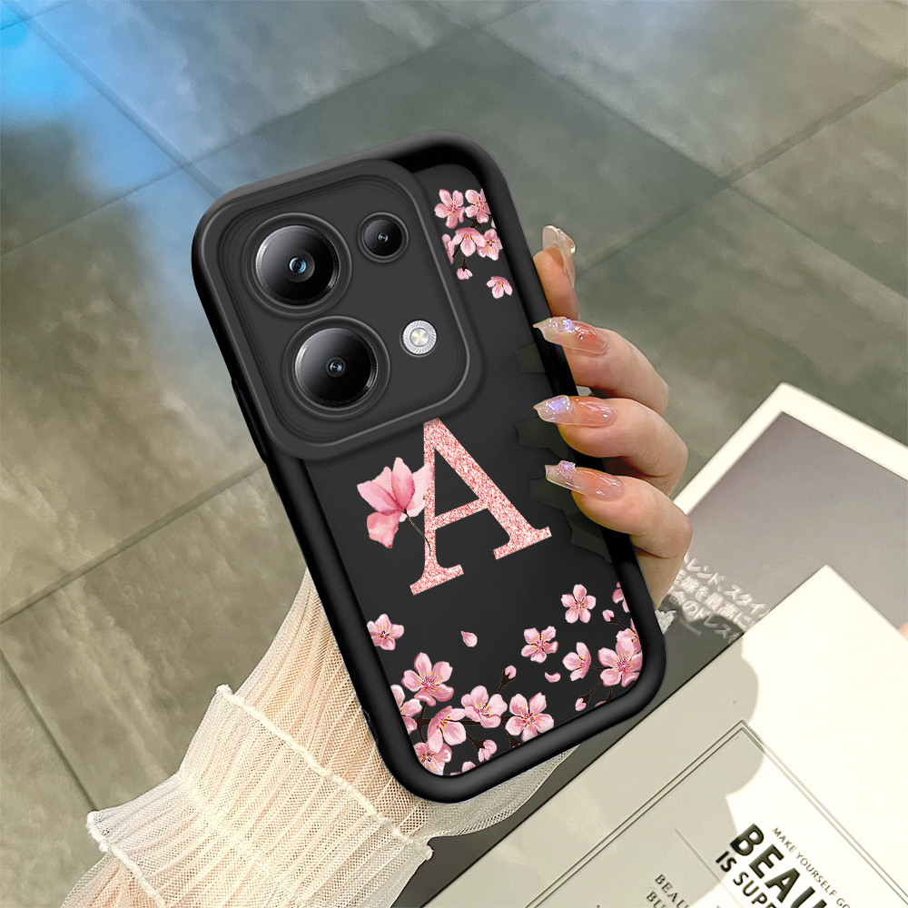 Capinha Letra Personalizada Para Xiaomi Redmi Note 13 Poco M6 Pro 4G Capa De Macia Silicone Protetora Preta Case DZ