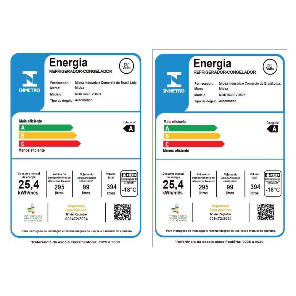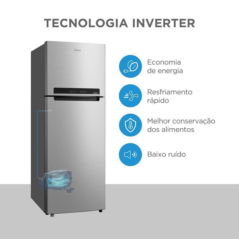 Geladeira Frost Free Duplex 394L Inverter Prata Midea MDRT533EVD501 110V
