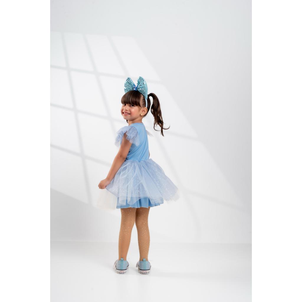 Fantasia Infantil Vestido Stitch Azul Claro com tiara