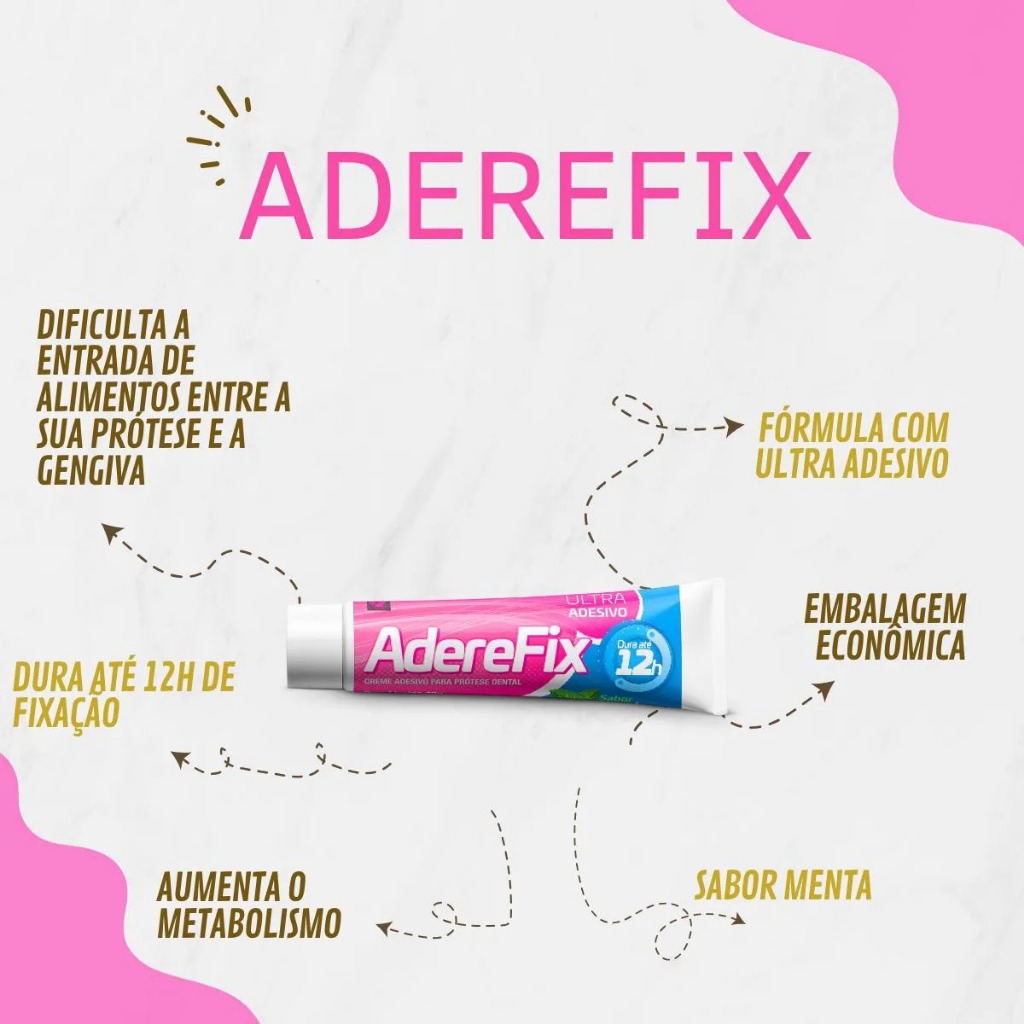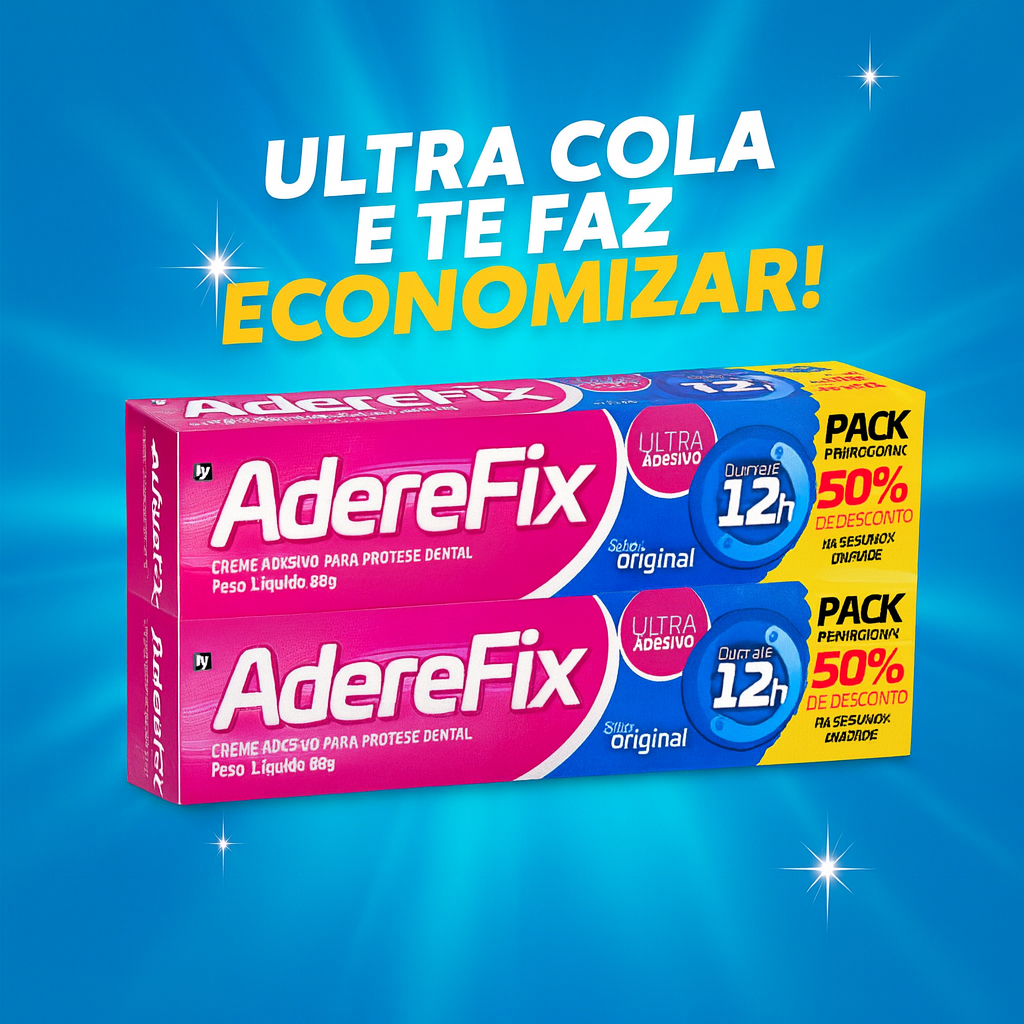 Kit 2 Unidades Creme Adesivo para Prótese Dental AdereFix Original 68Gr Cada - Duração 12h