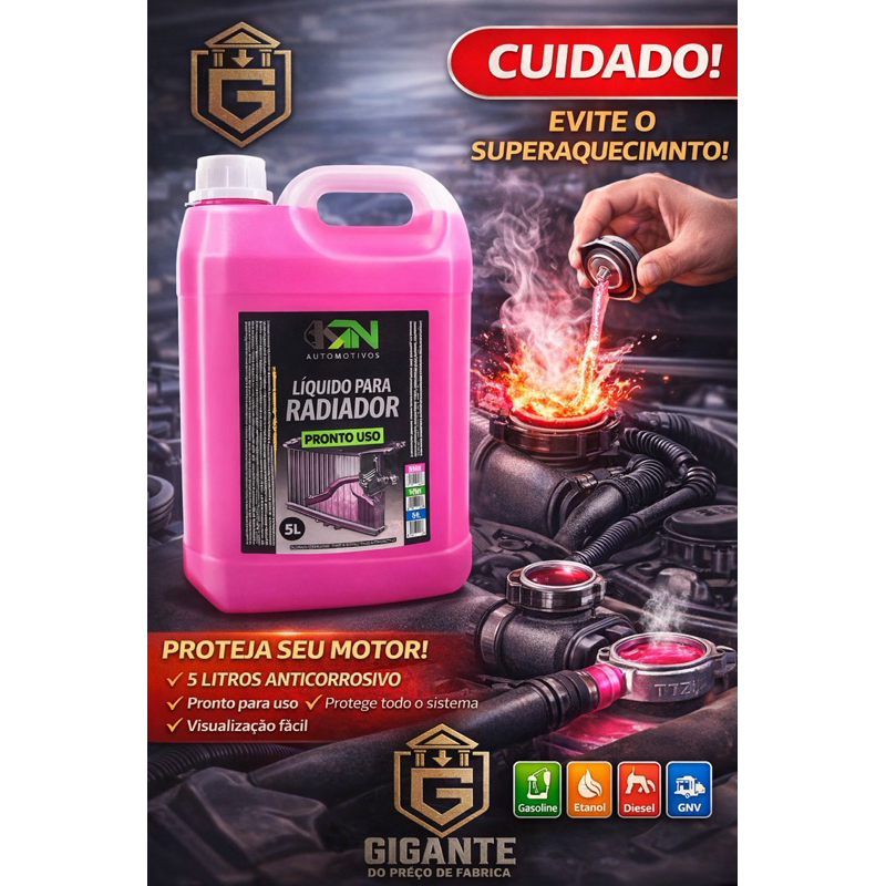Aditivo Radiador Pronto Uso Rosa KN 5 Litros | Fluido de Arrefecimento Automotivo Universal