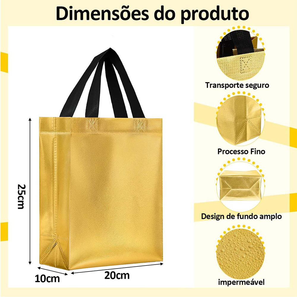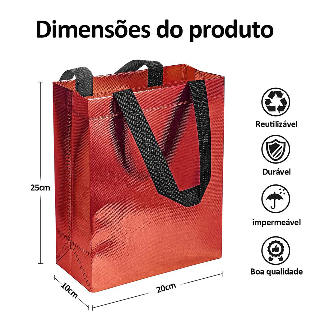 Pacote com 10/20 sacolas de presente com alças,não tecidas reutilizáveis de mercearia,Vários estilos disponíveis