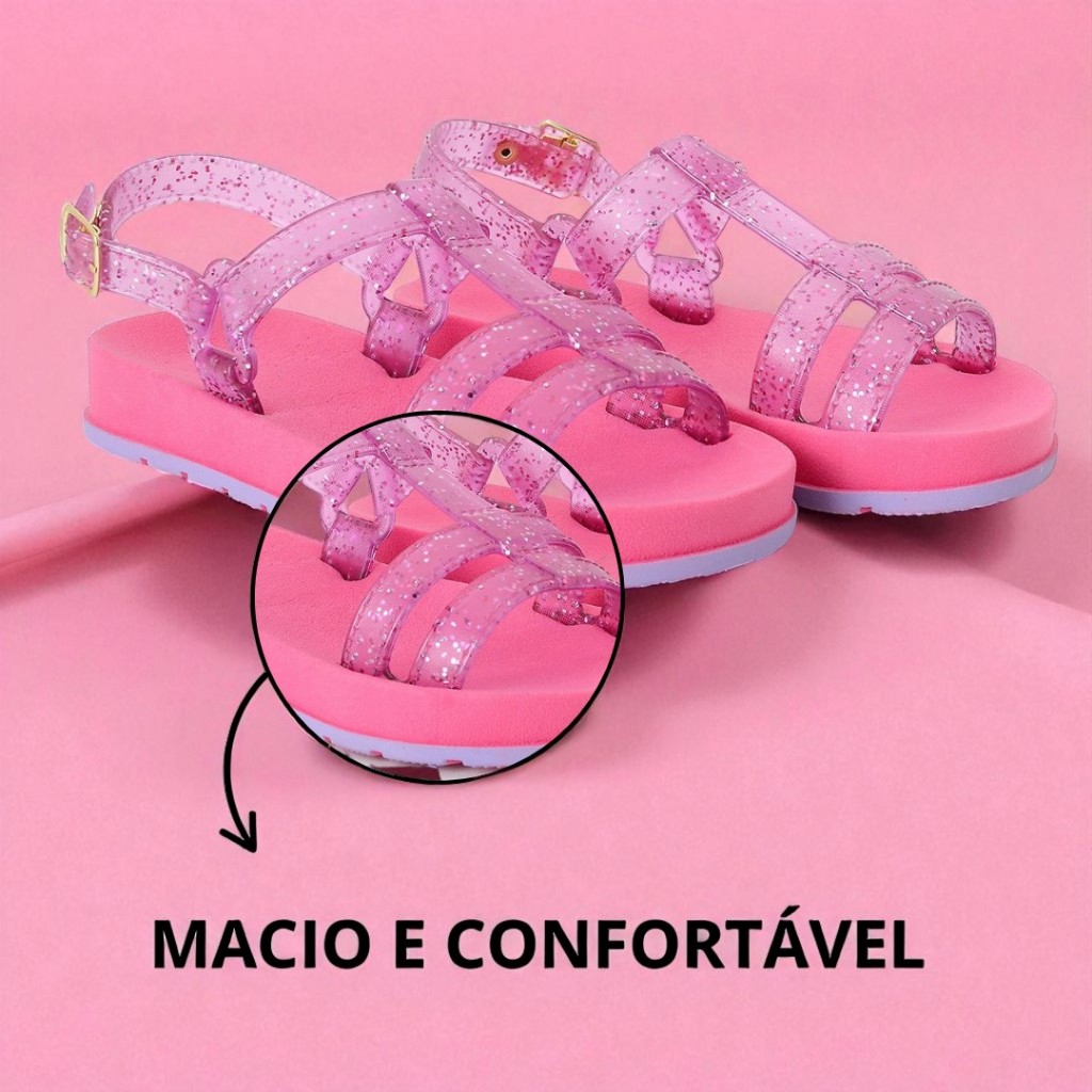 Sandália Sand Bia Modinha Feminina Juvenil – Confortável, Macia e Disponível em Rosa Pink e Preto