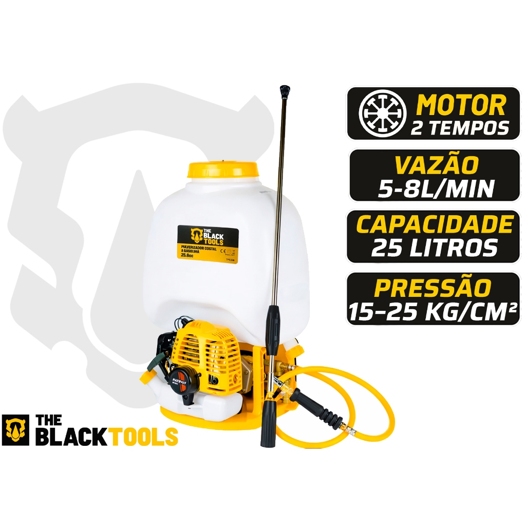 Bomba Pulverizador Costal Agrícola A Gasolina 25l Motorizado 2 Lanças 25,6cc Completo Acessórios Tpg256 The Black Tools