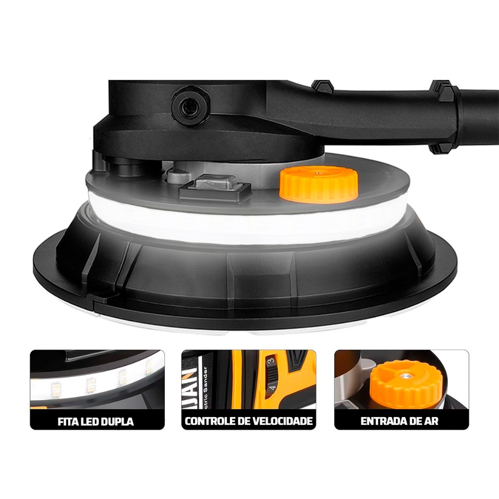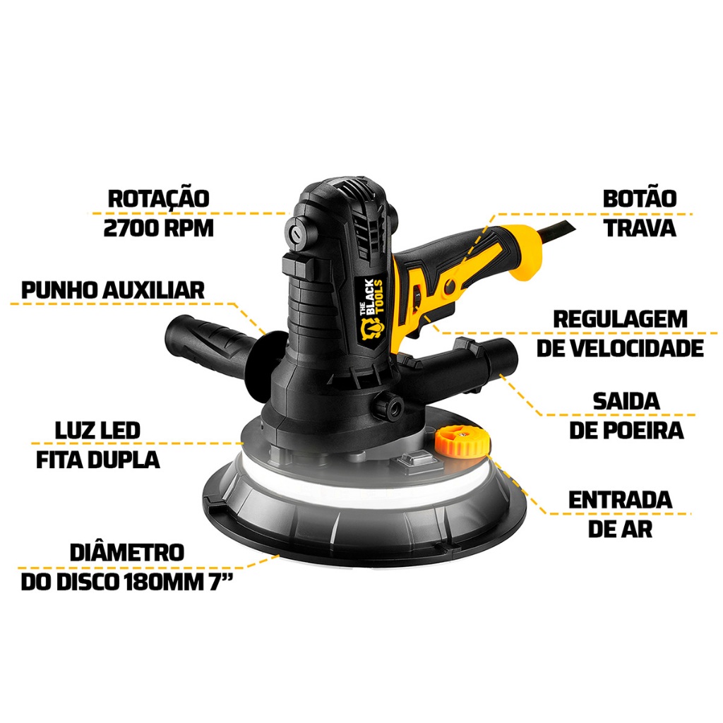 Lixadeira De Parede Teto Led Profissional C/motor Aspirador 1000w Saco Coletor The Black Tools