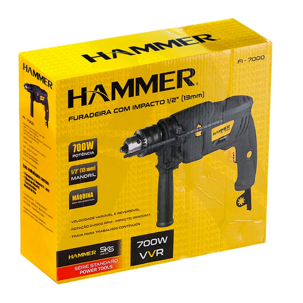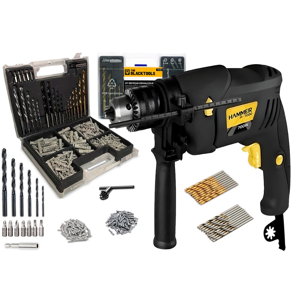 Furadeira De Impacto 1/2 700w 220V Hammer Com Maleta 300 Peças Brocas E Buchas