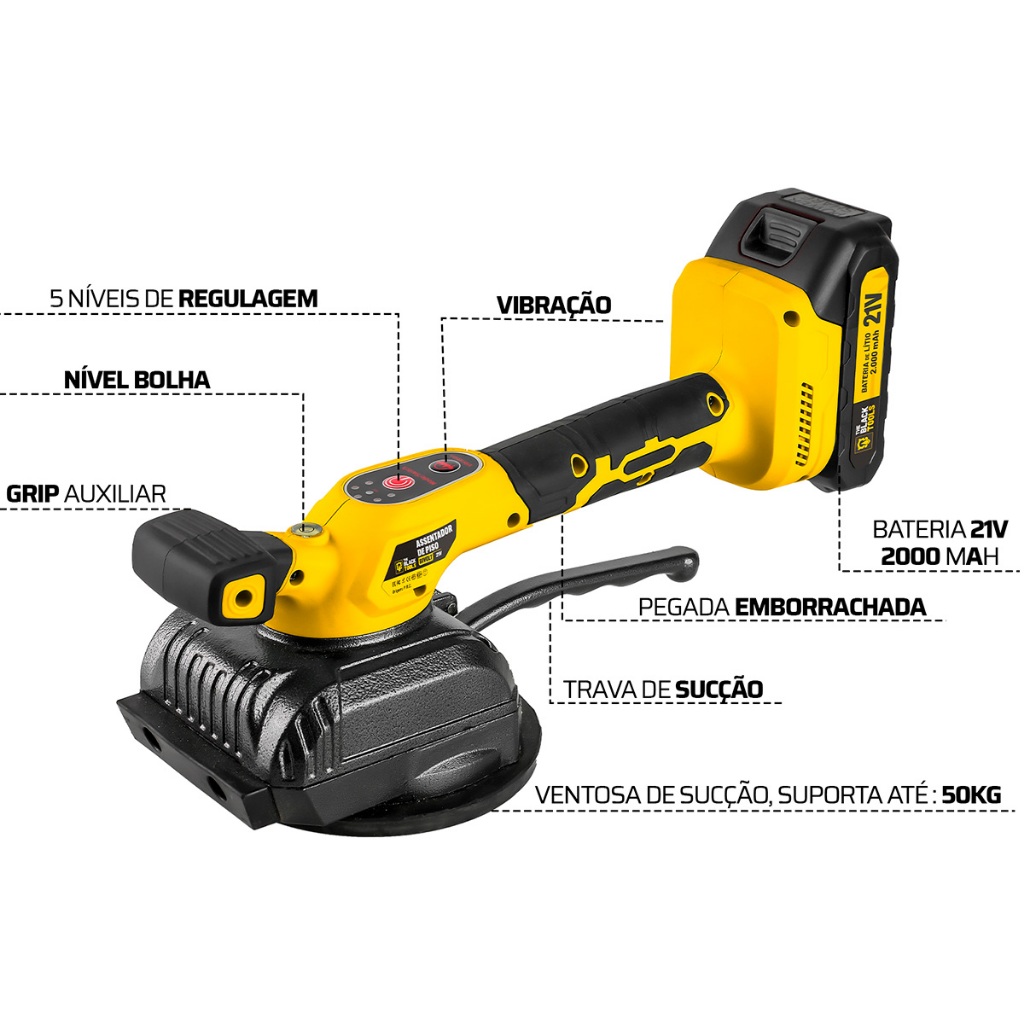 Assentadora De Piso Azulejos E Porcelanatos Elétrica C/ Ventosa 50kg Bateria 21v The Black Tools