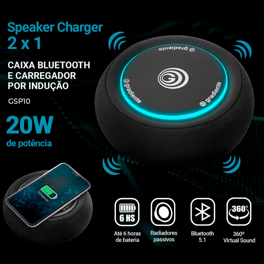 Mini Caixa De Som Speaker Bluetooth Portátil Carregador Indução Tws 20w Gradiente
