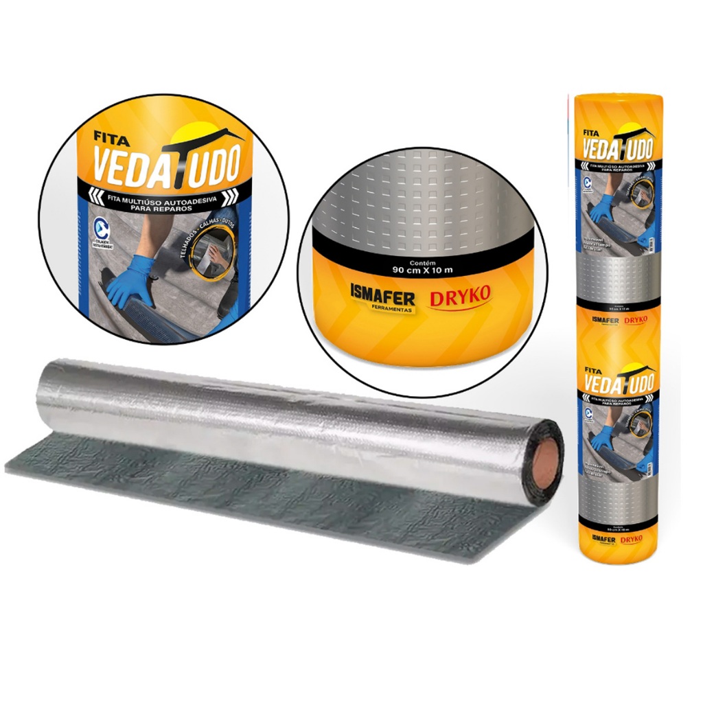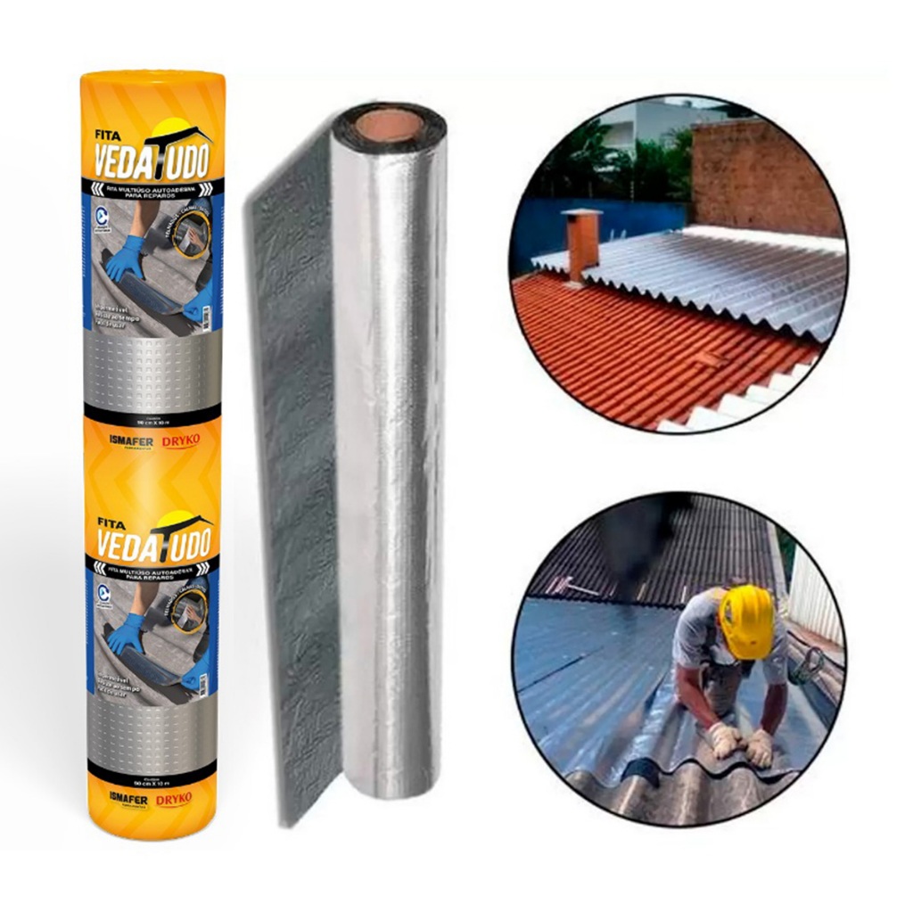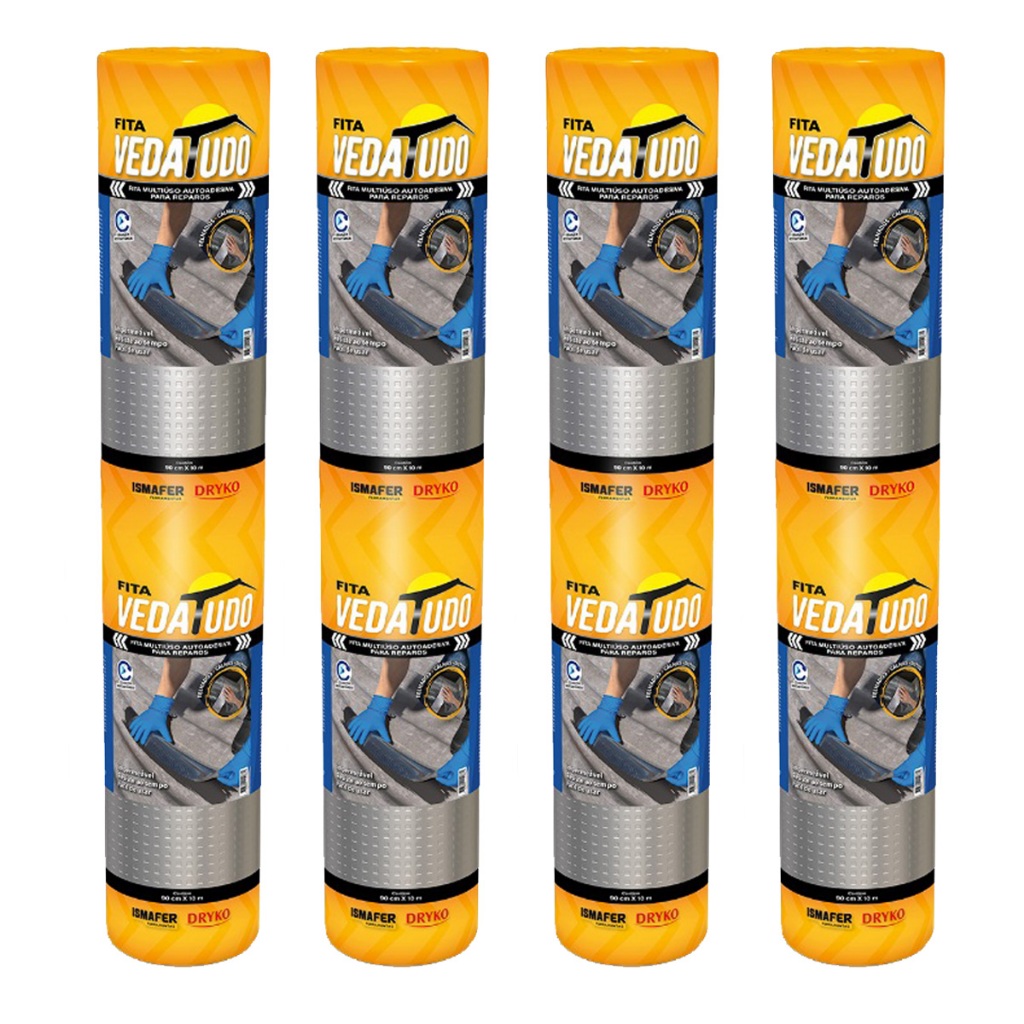 Manta Fita Asfáltica 90cm X 10m Auto Adesiva Vedatudo Aluminizada 4 Unidades