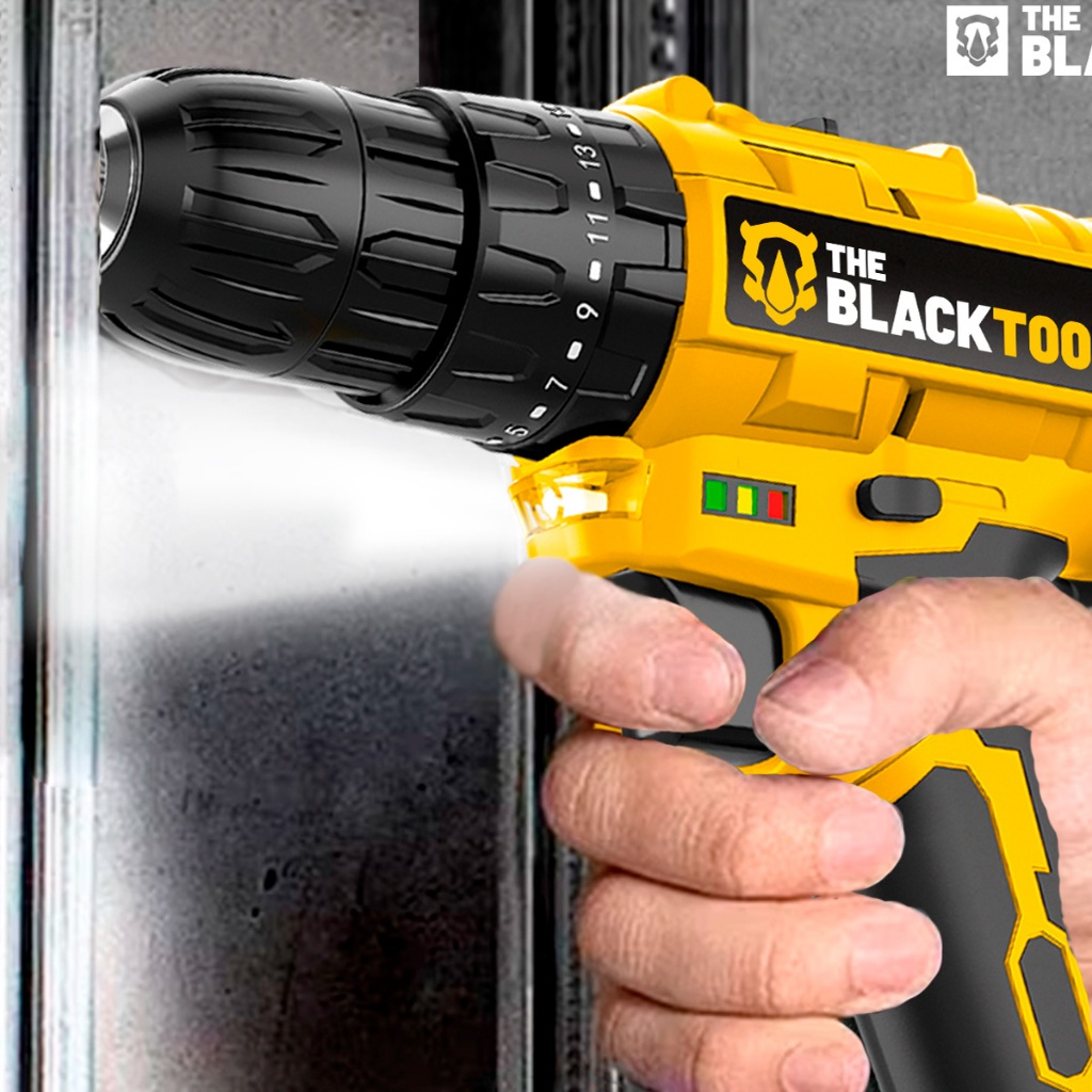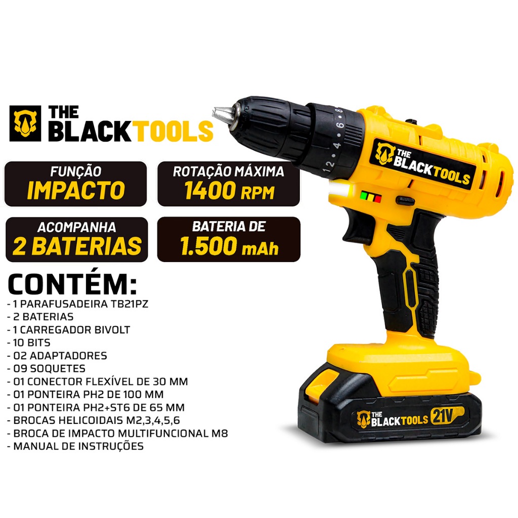 Parafusadeira E Furadeira De Impacto 3/8 Bivolt 2 Baterias E Acessórios The Black Tools